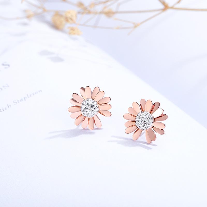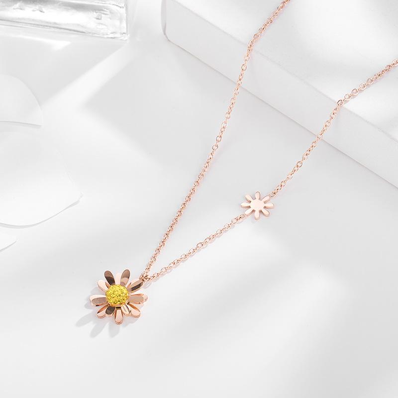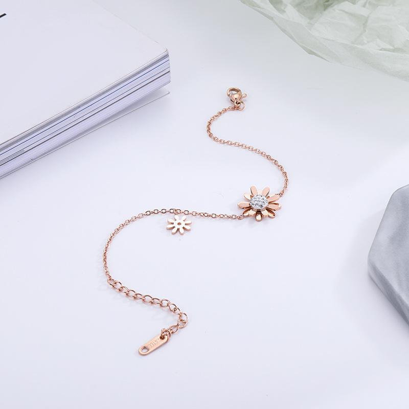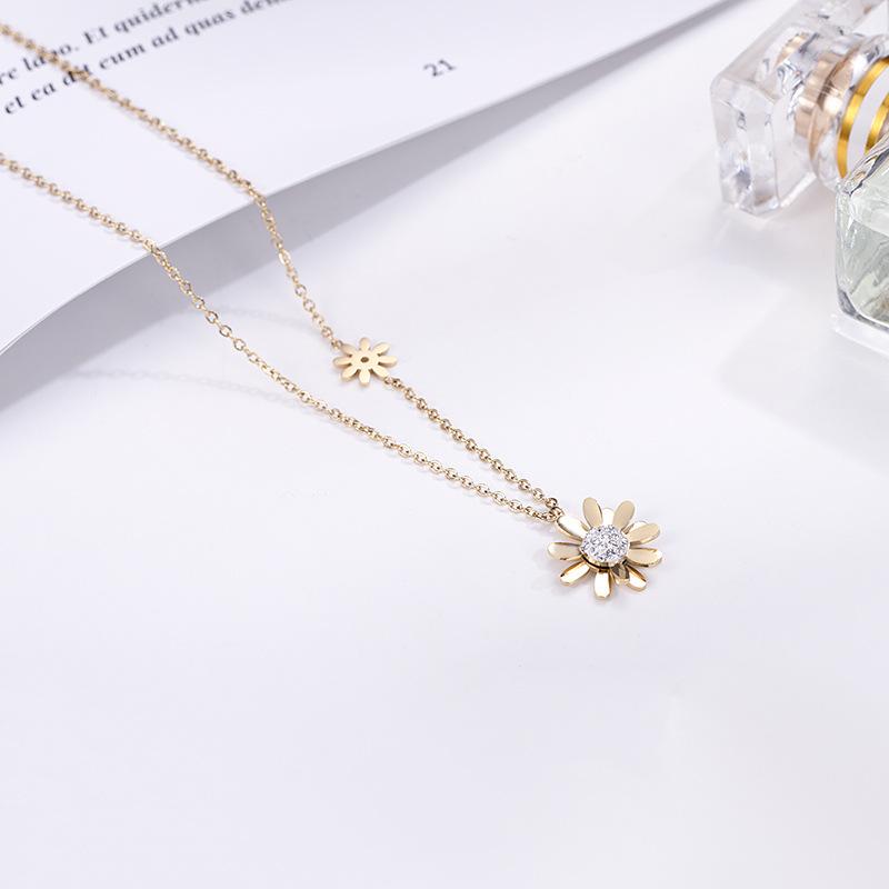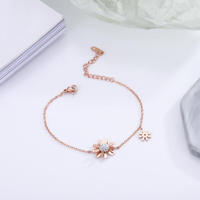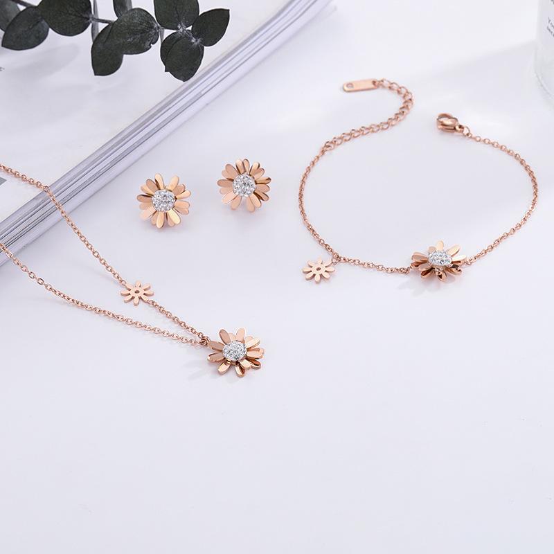 Nuevo collar minimalista de margaritas de acero de titanio para mujer, pendientes de oro rosa, pulsera de moda, joyería adecuada para una generación de cabello.