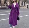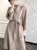 Abrigo de cachemira blanco de doble cara para mujer, abrigo de lana de alta gama con ondulación de agua, gabardina, para otoño e invierno