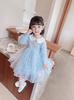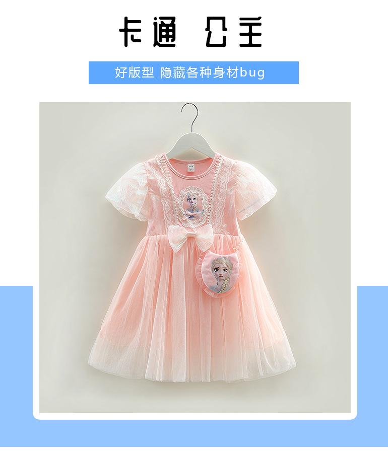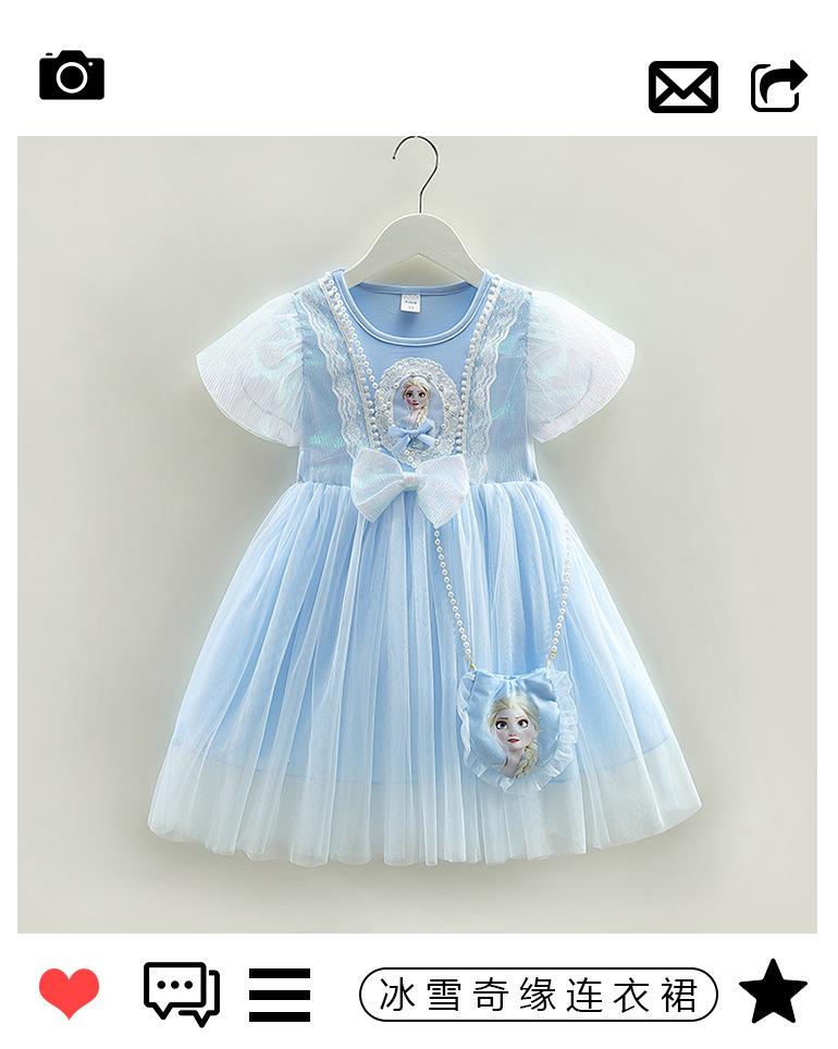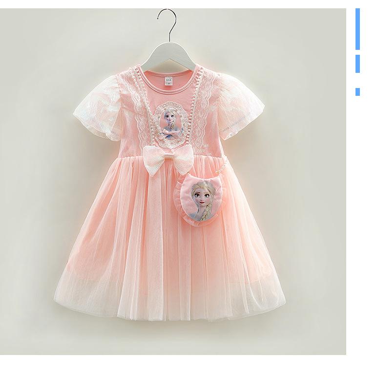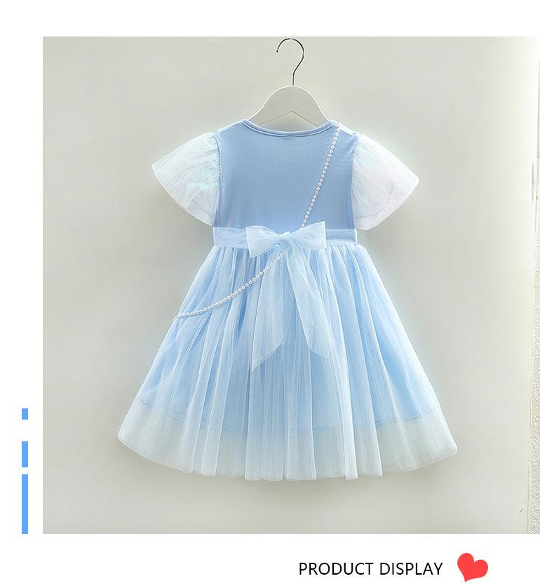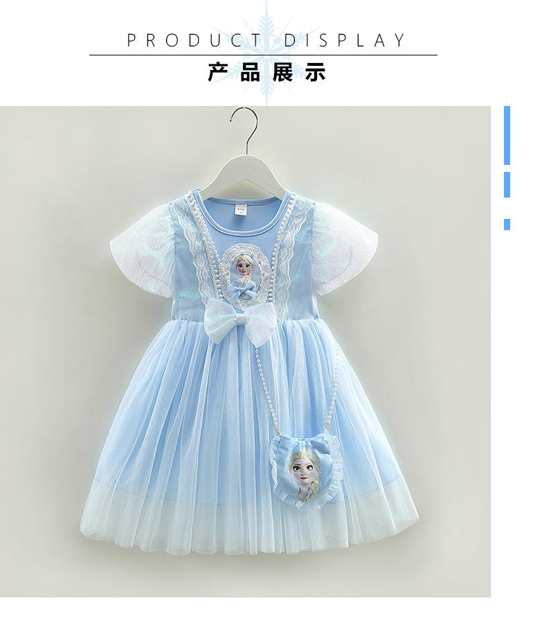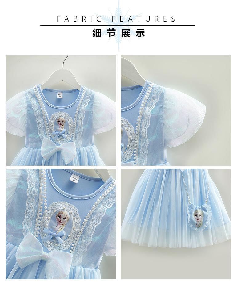 Vestido de Elsa de Manga Corta para Niñas Verano 2025 Nuevo Vestido de Princesa Elsa Vestido Estilo Bebé Falda Estilo Coreano Falda de Gasa
