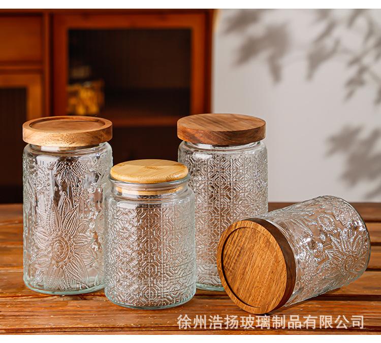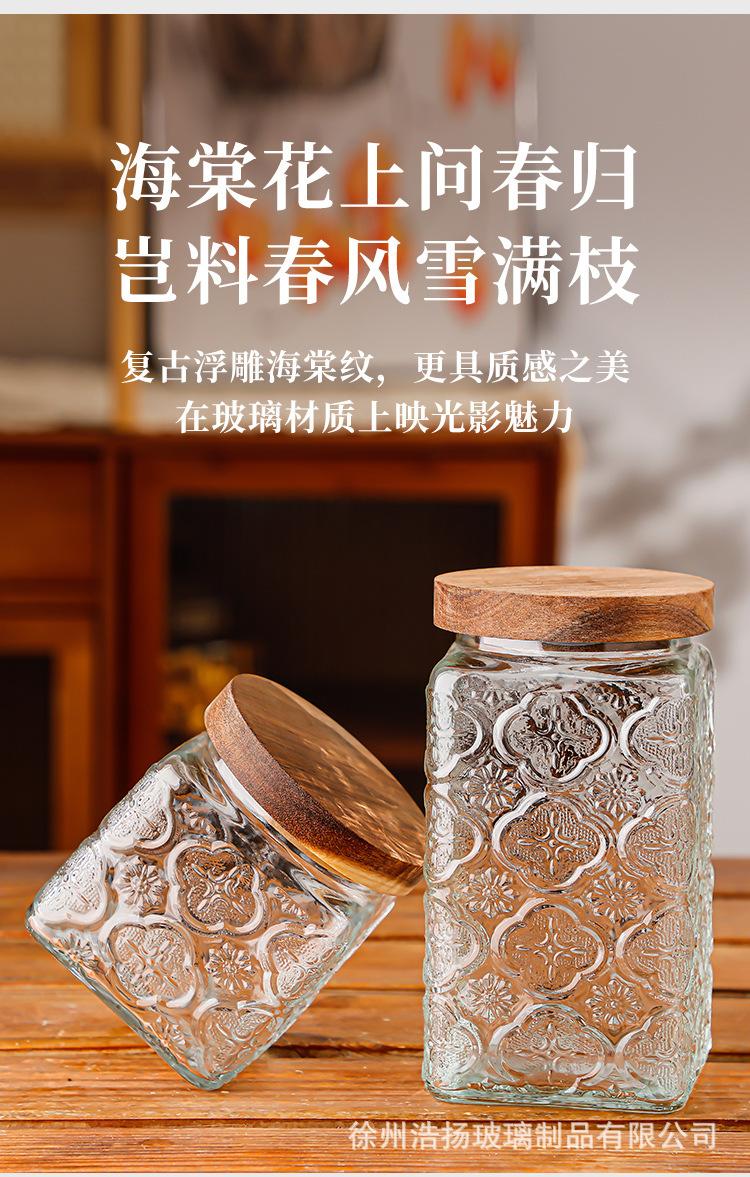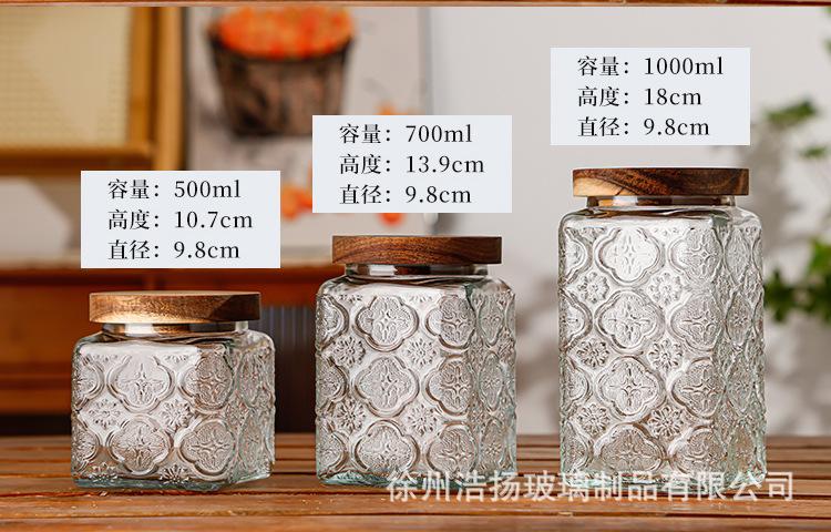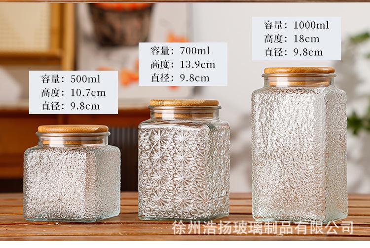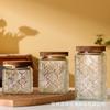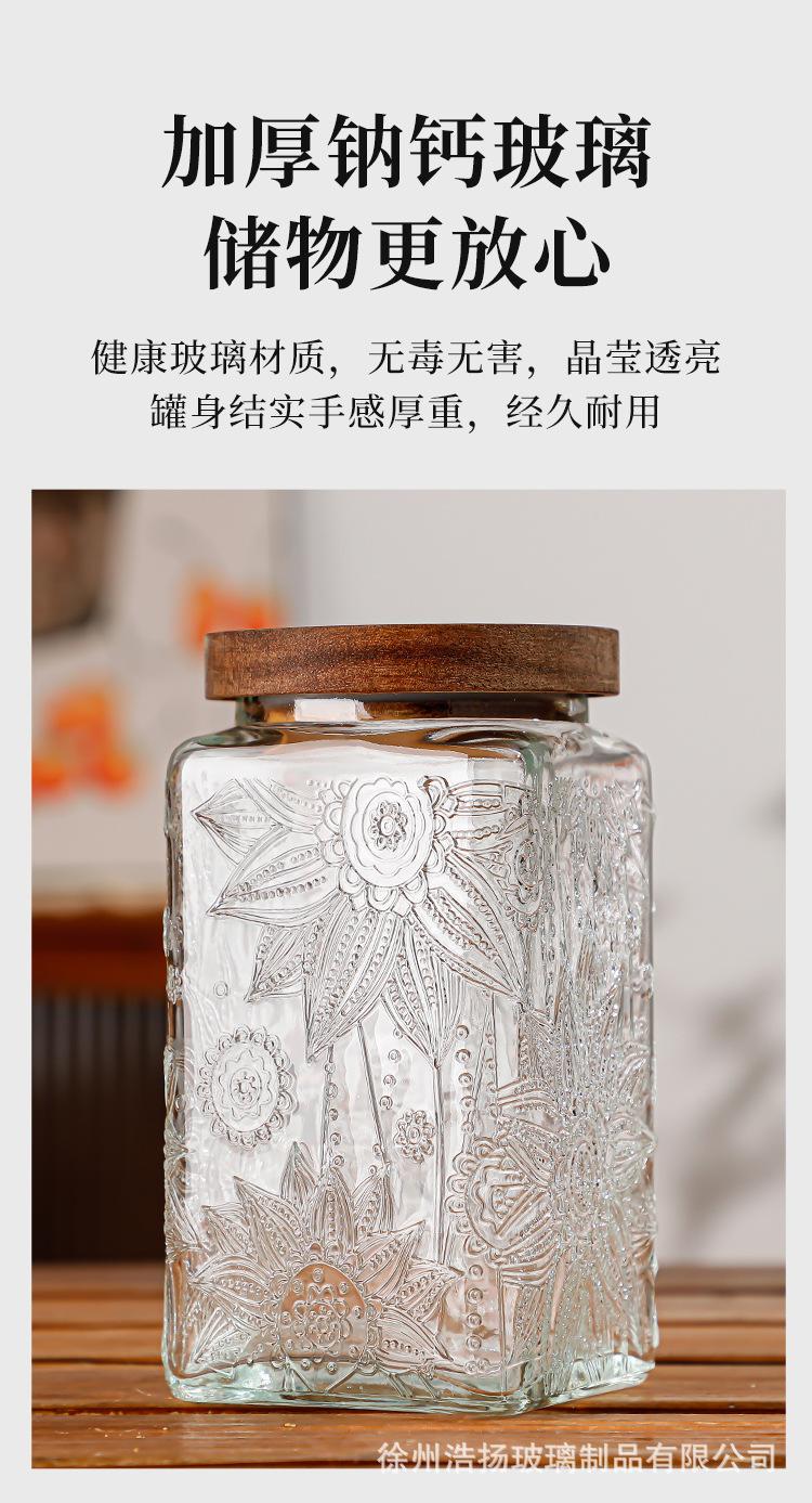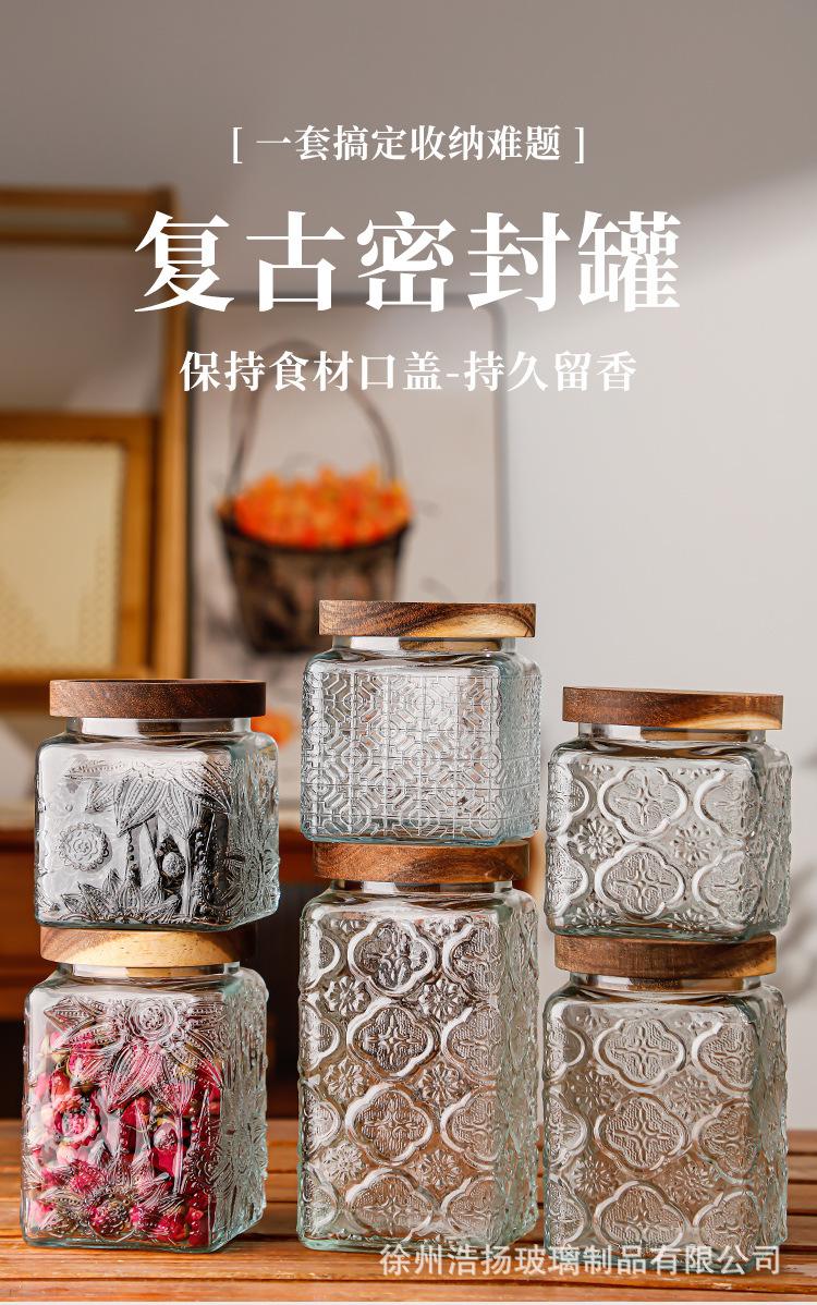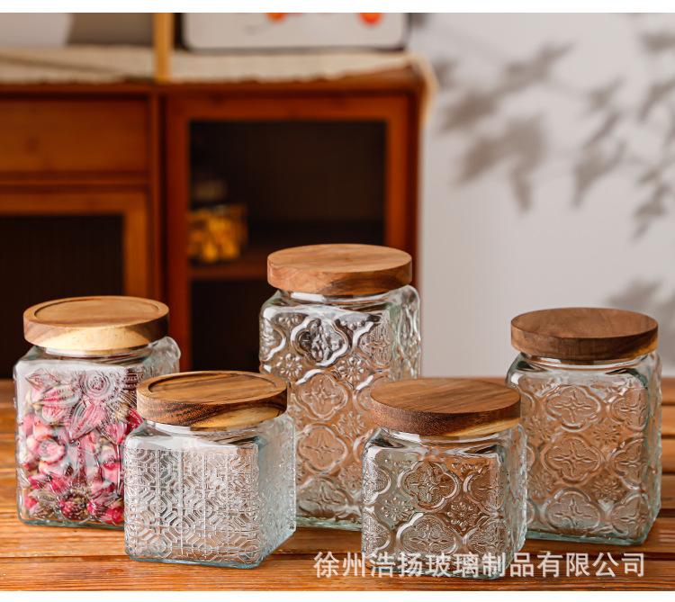 Frasco de vidrio repujado, sellado, cuadrado, para almacenar refrigerios, frutos secos, cocina, hogar, vintage