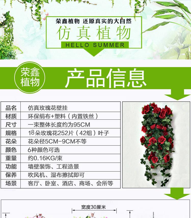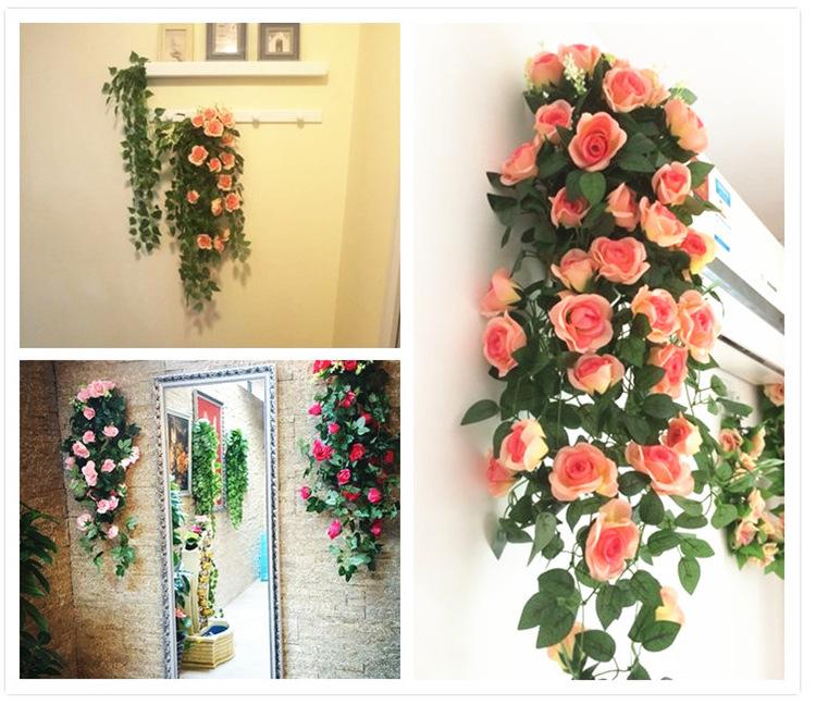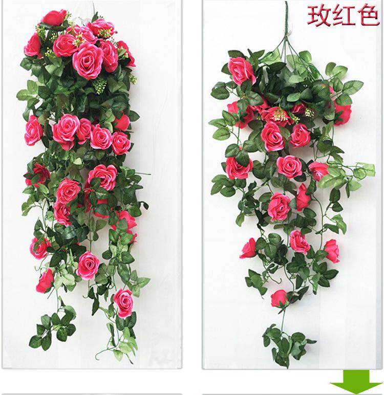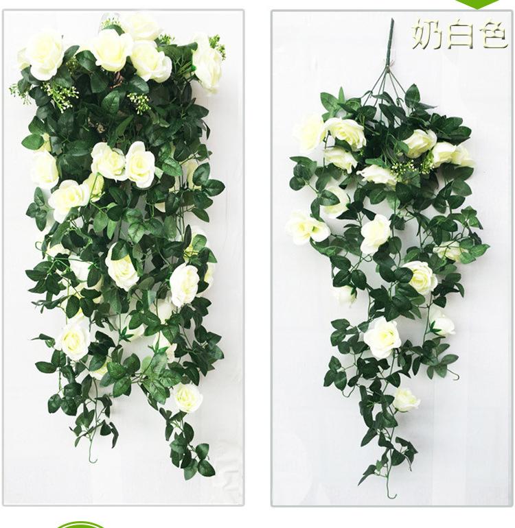 Flores Artificiales Rongxin Colgante de Pared de Rosa Artificial Boda Decoración del Hogar Arte de Pared de Flores Falsas Plantas Verdes Colgantes Plantas Verdes Artificiales