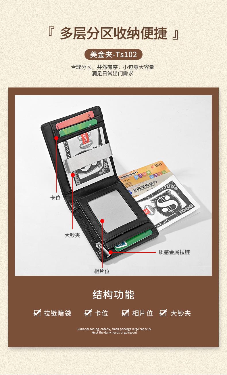 Especial transfronterizo para clip dorado americano billetera para hombre tarjetero para cheques business casual antirrobo cepillo corto billetera PFID tarjetero para hombre