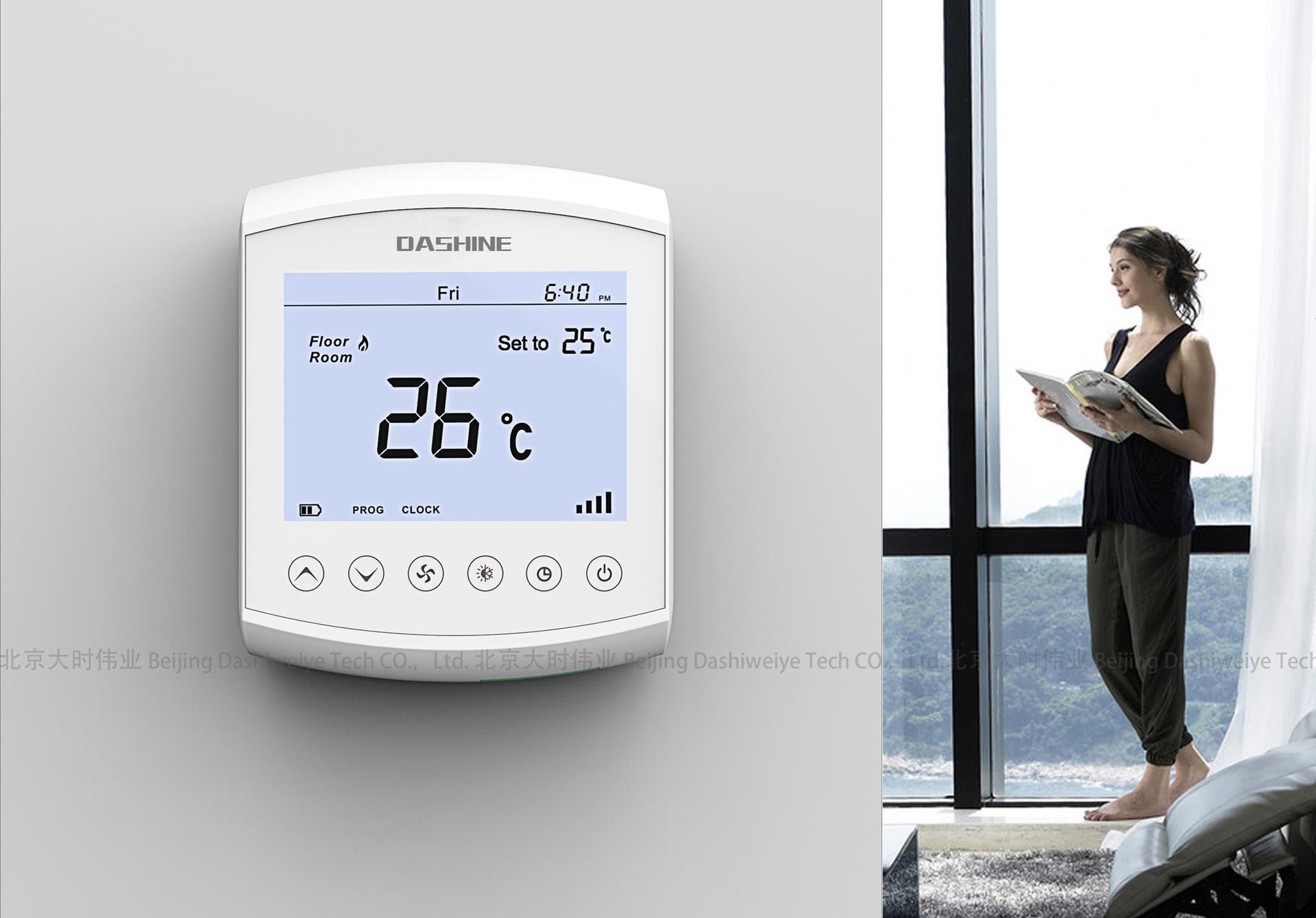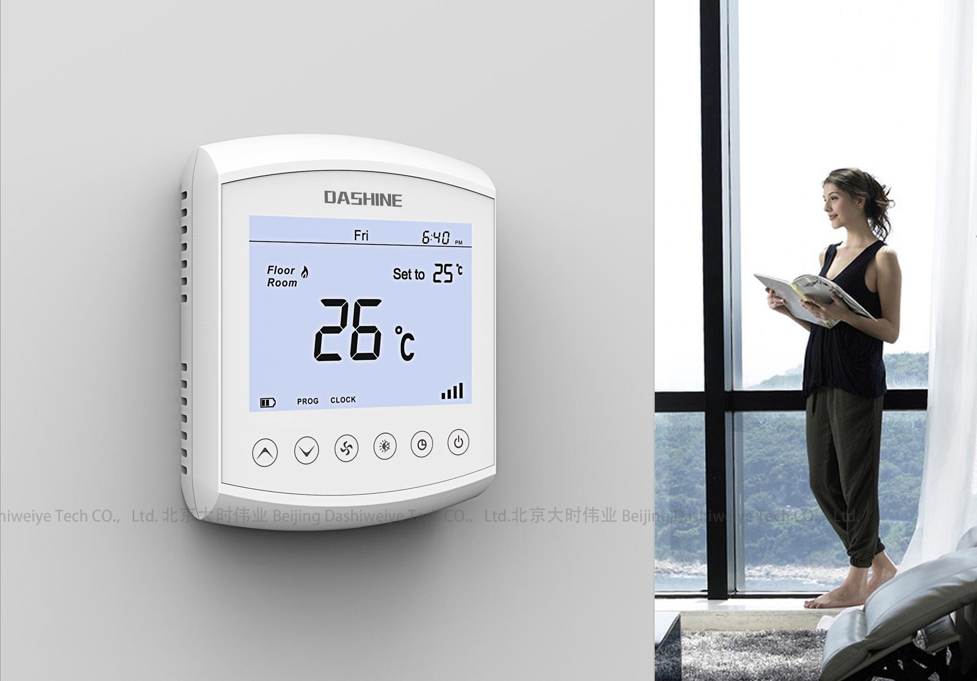 Termostato táctil inalámbrico inteligente con carcasa No. Carcasa de plástico de 7 baterías, modelo público, pantalla digital, controlador de instrumento.