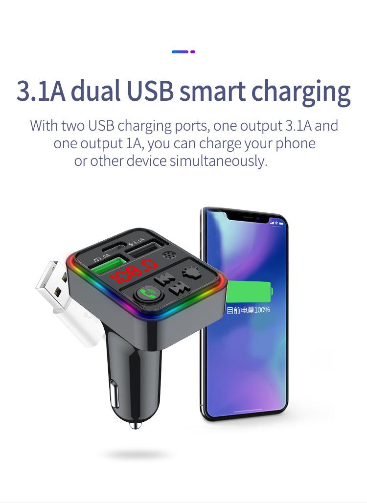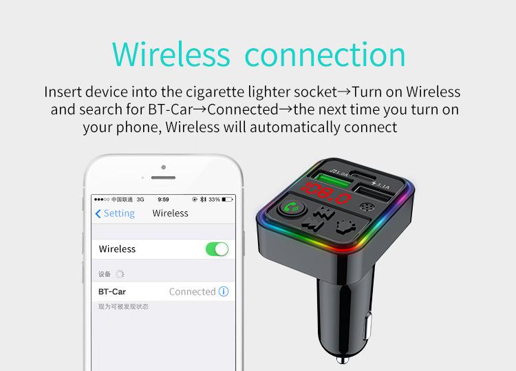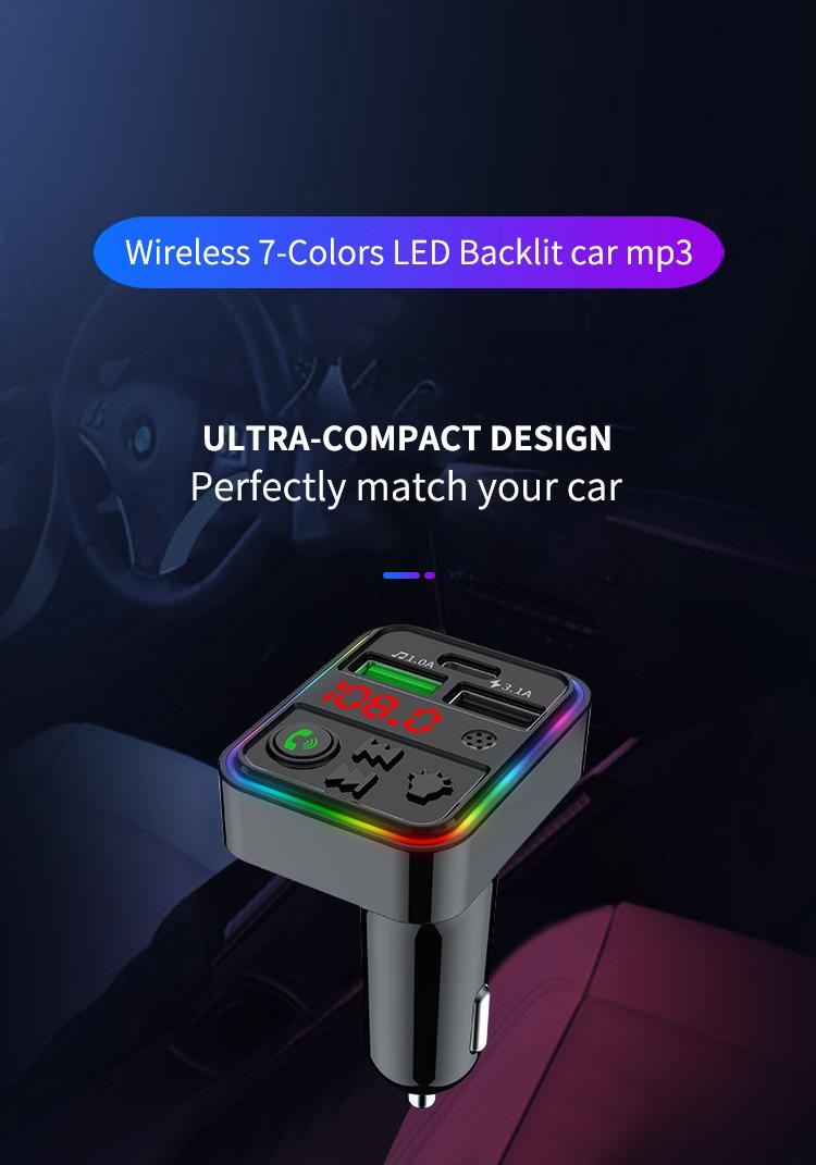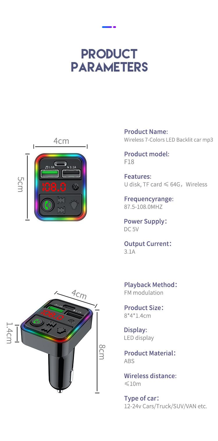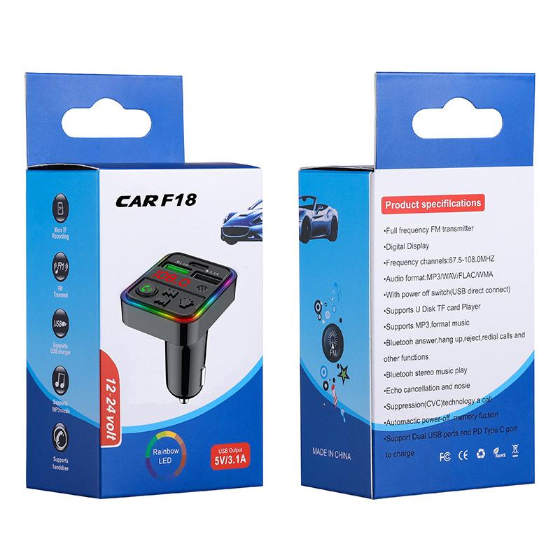 Nuevo F18 luces de colores reproductor bluetooth para coche reproductor mp3 para coche multifuncional cargador transmisor fm