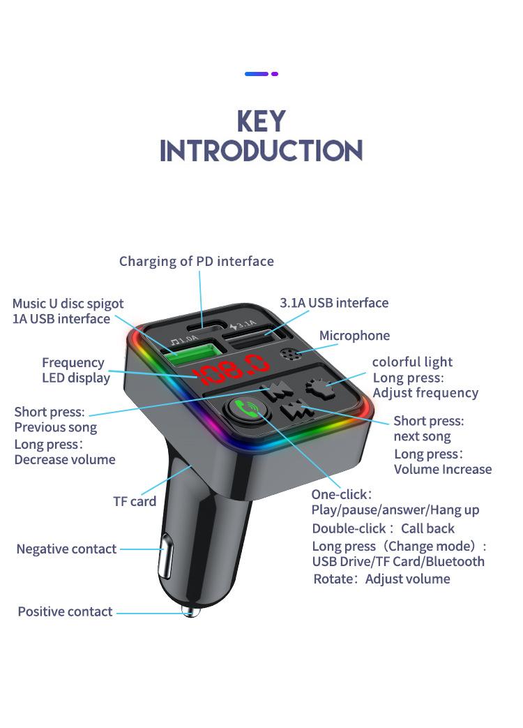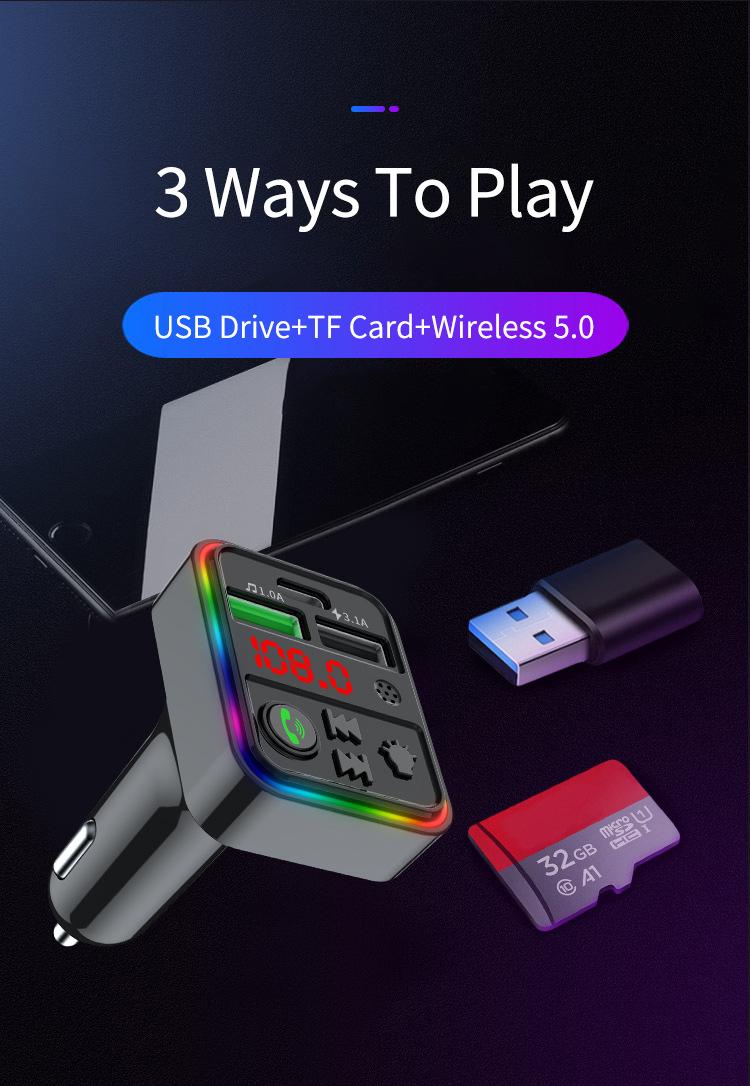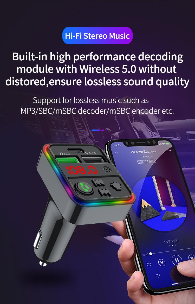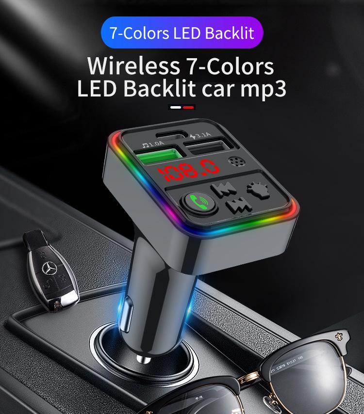Nuevo F18 luces de colores reproductor bluetooth para coche reproductor mp3 para coche multifuncional cargador transmisor fm