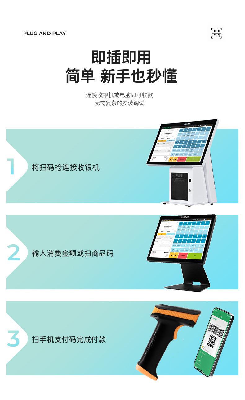 Escáner de código de barras para caja registradora móvil, inalámbrico y con cable 2D de alta velocidad, escáner de código de barras para supermercados, escáner de logística exprés