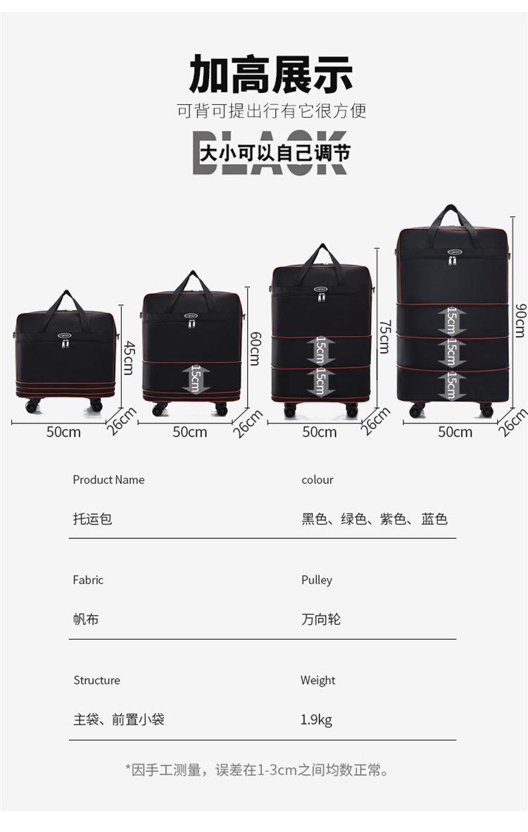 Black three-layer extension, removable universal silent wheel, comes with explosion-proof belt