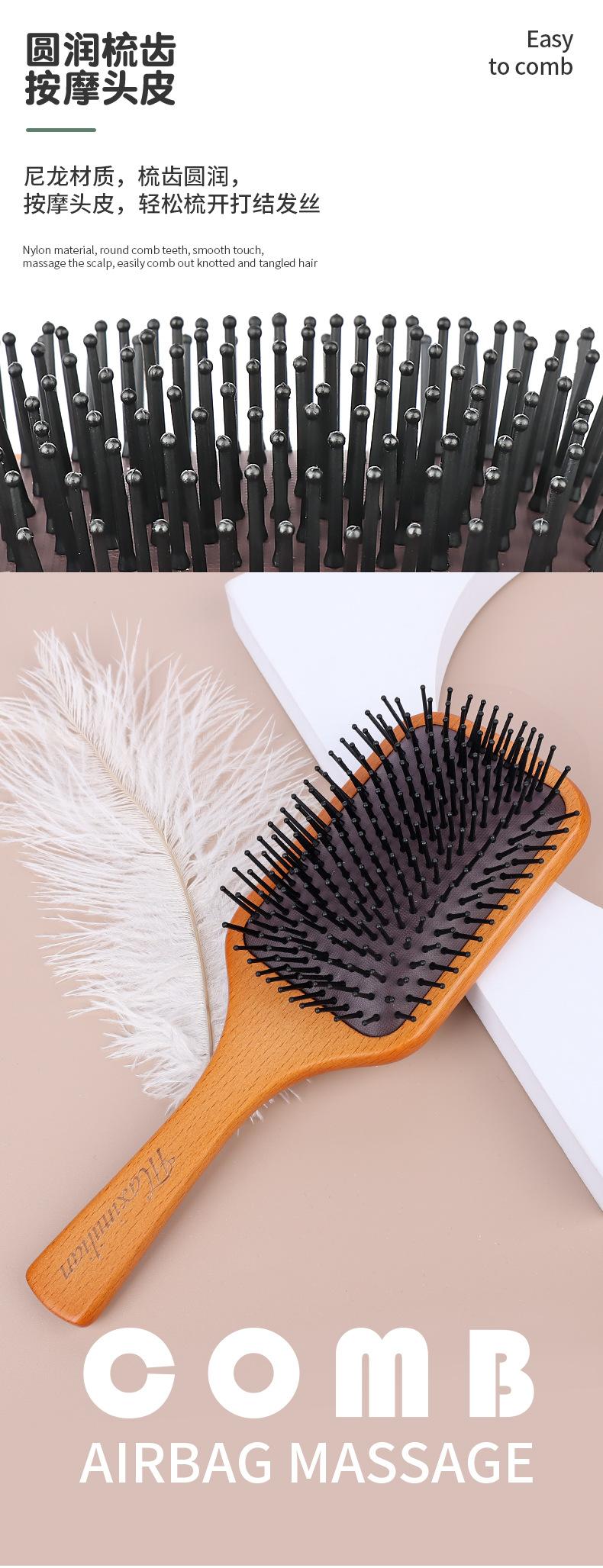Peine de masaje con cojín de aire, peine especial para niñas, peine de madera maciza con cojín de aire, peine para el cuero cabelludo, peine de peluquería, peine con cojín de aire, explosiones