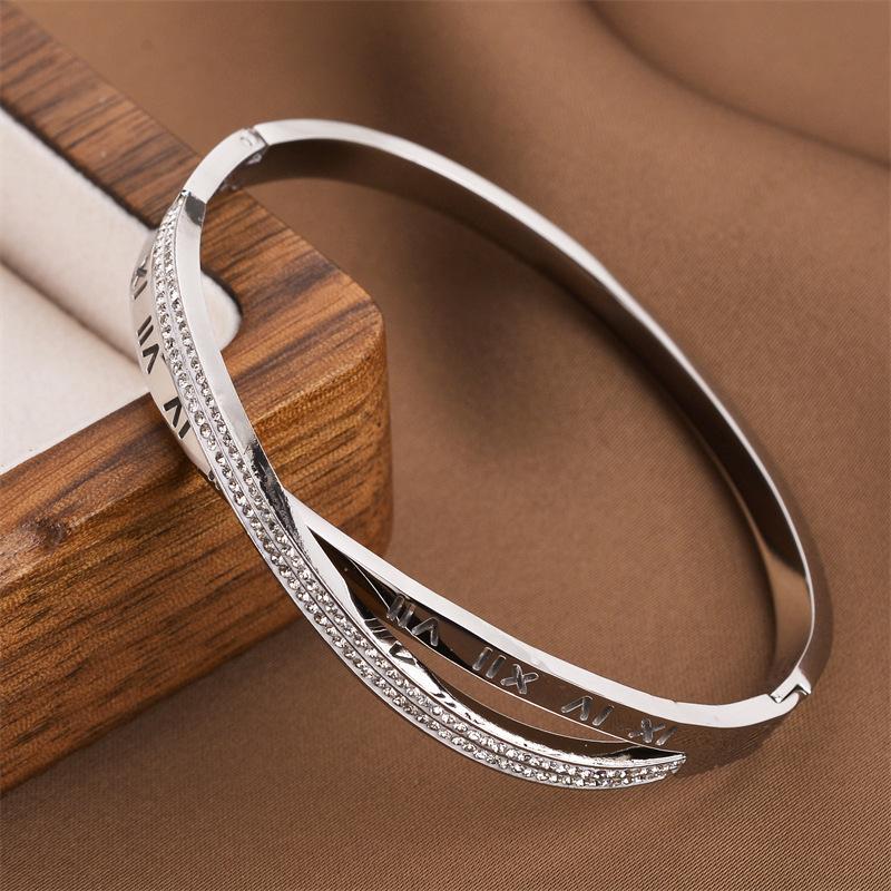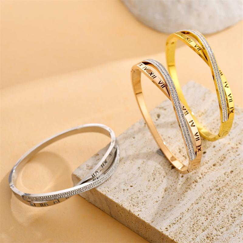 Pulsera Europea y Americana Transfronteriza Cruz con Números Romanos Hebilla de Circonita Acero Inoxidable Chapado en Oro Moda Simple Lujo Ligero Joyería para Mujer