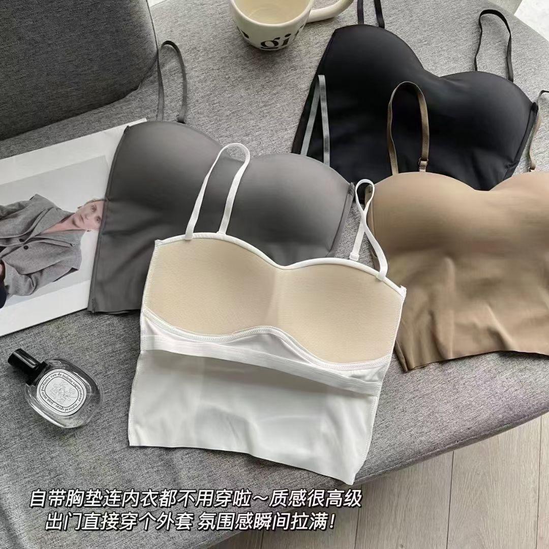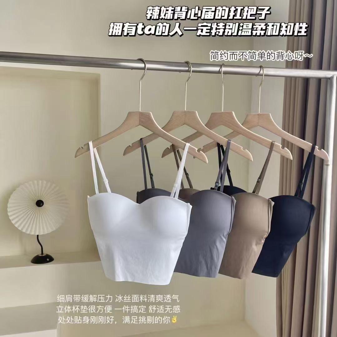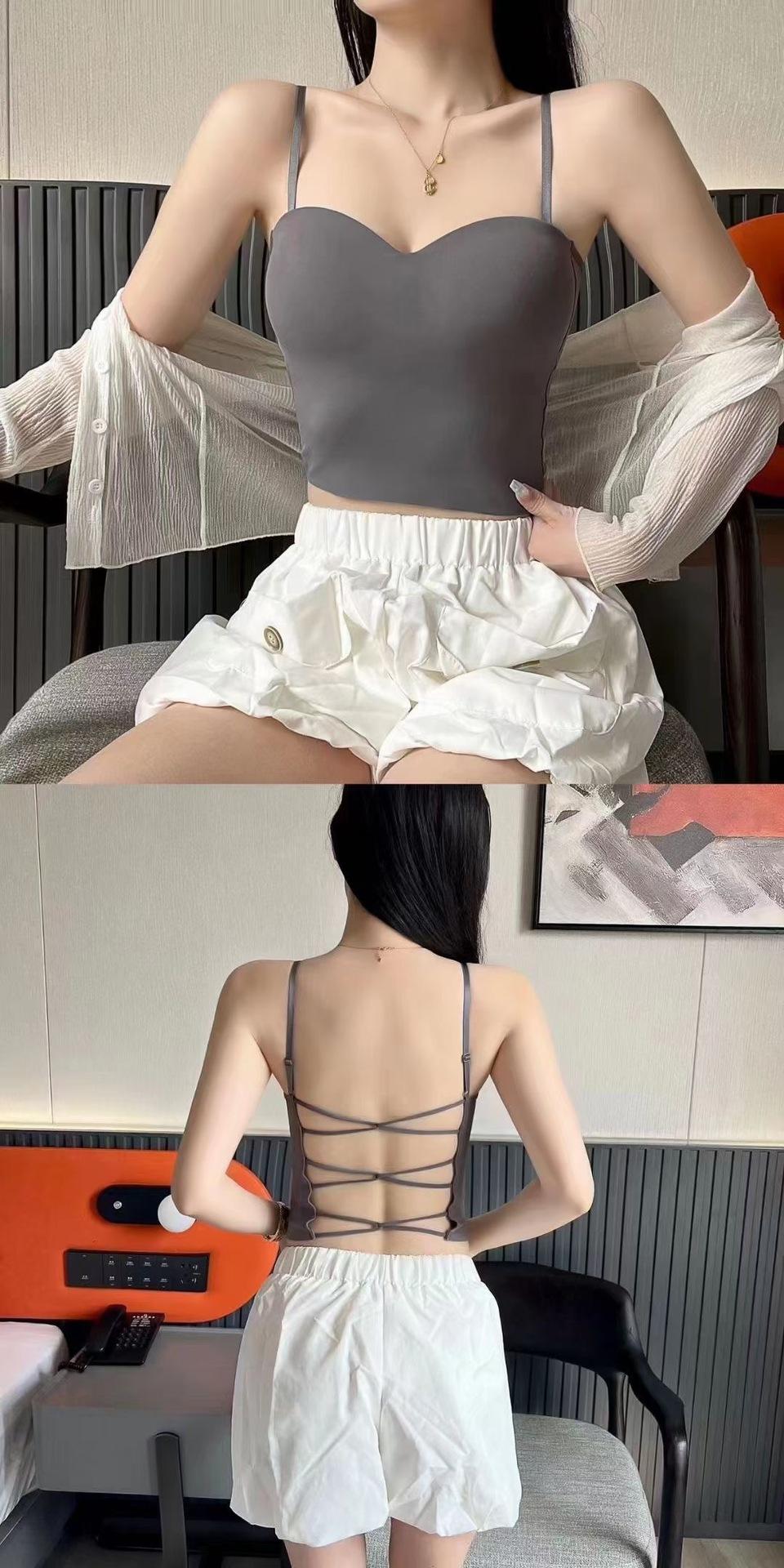 Chaleco pequeño de seda de hielo sin costuras para mujer, ropa interior cómoda, antideslumbrante, con almohadilla fija para el pecho y espalda hermosa, novedad de verano