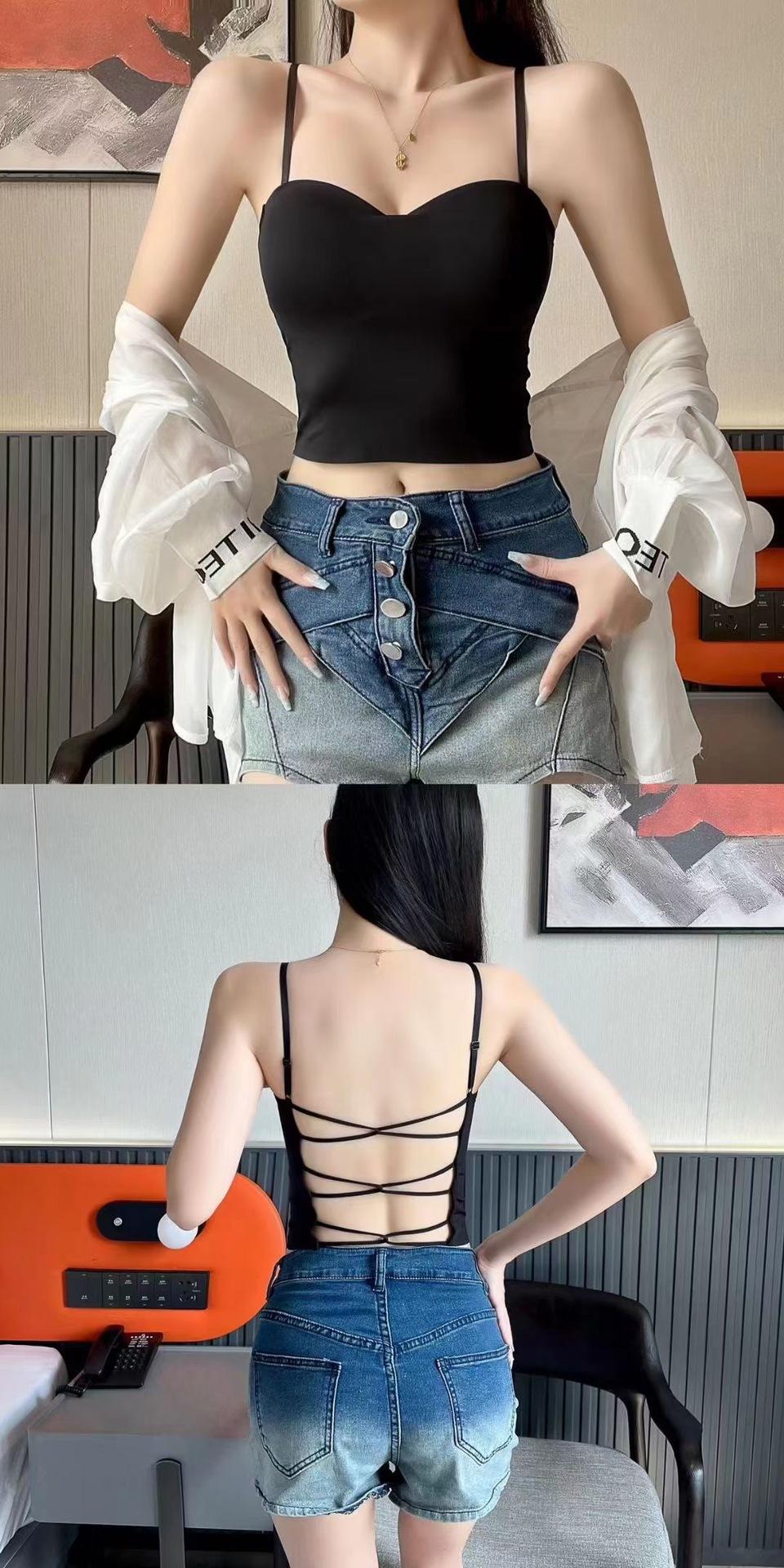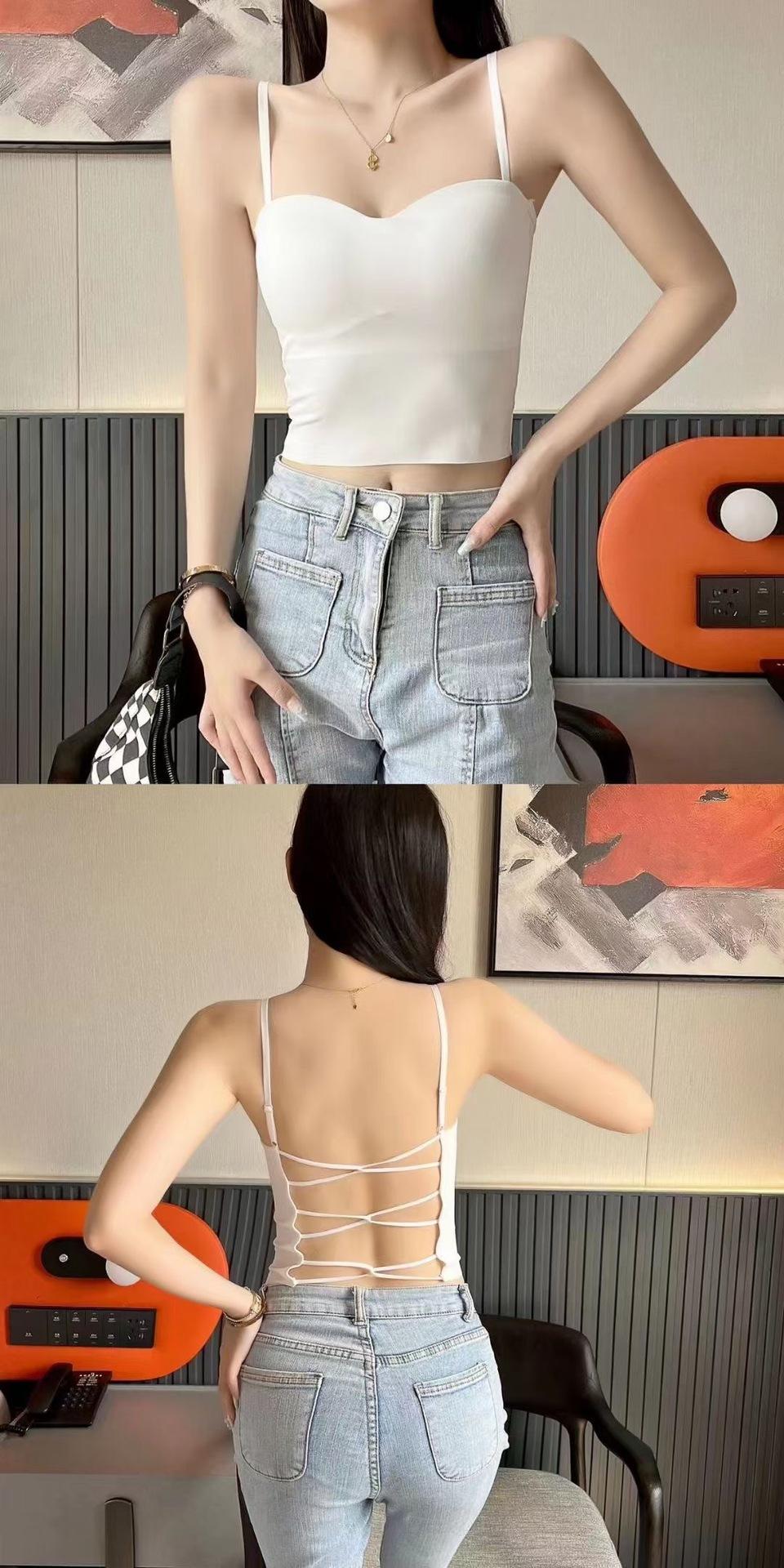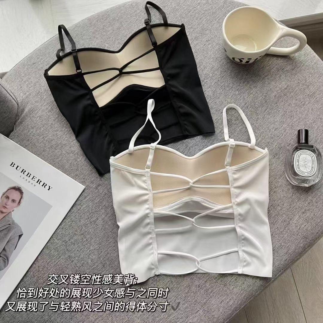 Chaleco pequeño de seda de hielo sin costuras para mujer, ropa interior cómoda, antideslumbrante, con almohadilla fija para el pecho y espalda hermosa, novedad de verano