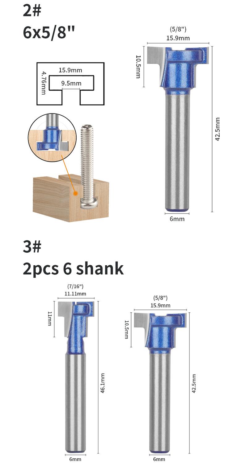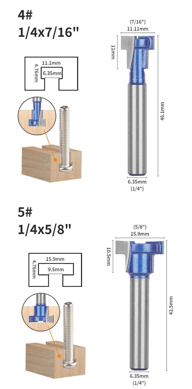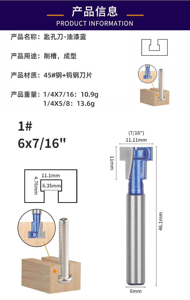 Cuchillo ojo de cerradura de dos piezas pintura azul de doble filo cuchillo de ranura en T ojo de cerradura marco de fotos orificio para colgar cuchillo gong carpintería fresa