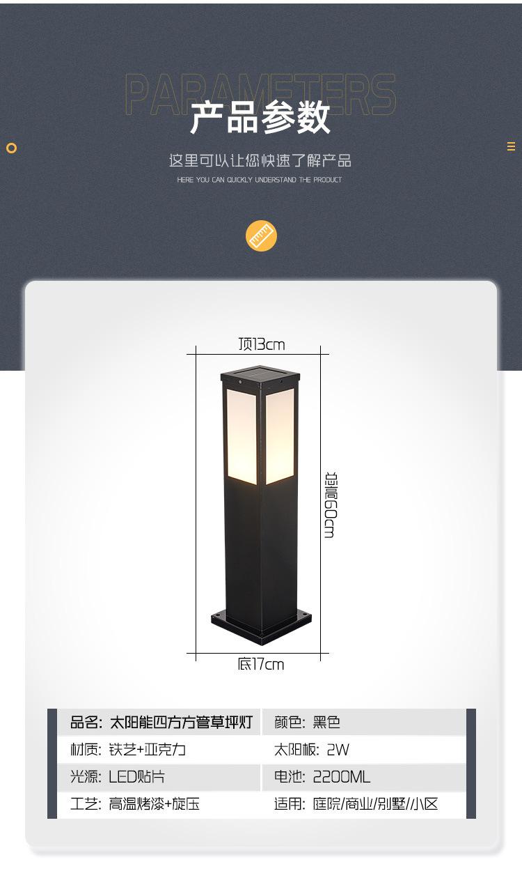 Lámpara de césped impermeable para exteriores, luz solar para jardín, patio, villa, paisaje, luz cuadrada para césped
