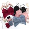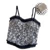 Top de encaje estilo francés con estampado floral, sexy, con tirantes y espalda cruzada, para mujer, con almohadilla para el pecho