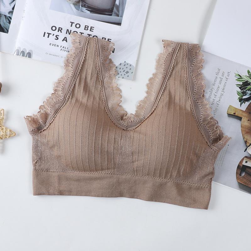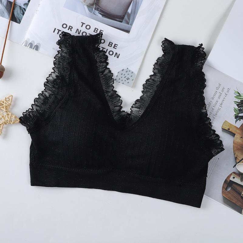 Chaleco con hebilla trasera, encaje, tirantes anchos para los hombros, con hilo en el pecho, espalda hermosa, sin tirantes, parte inferior, anti-correr, sin aros, ropa interior deportiva