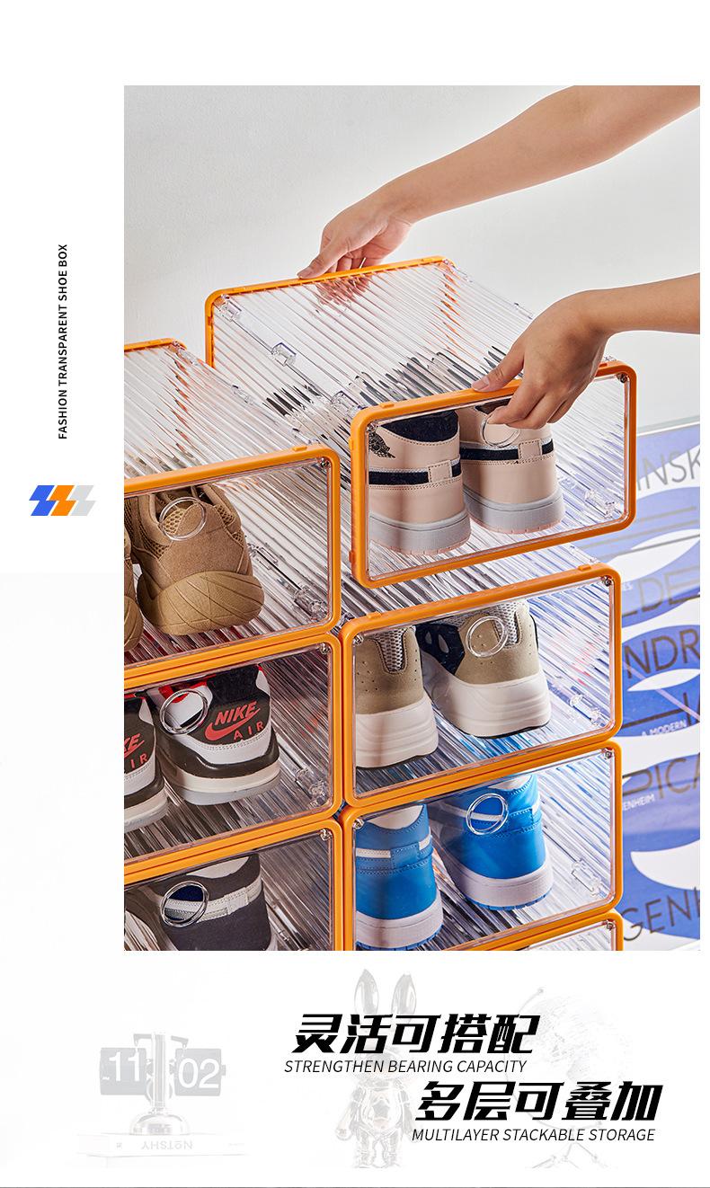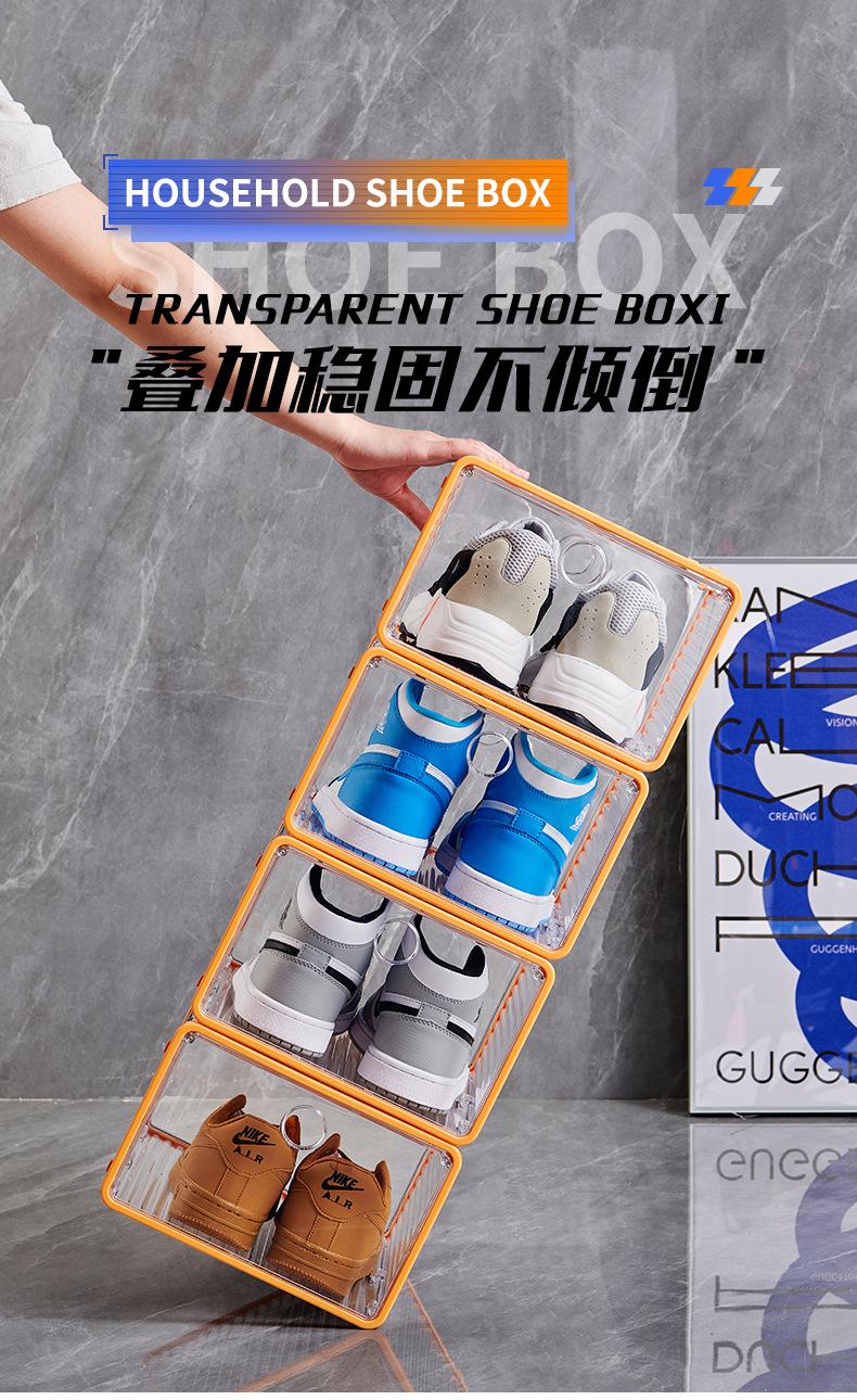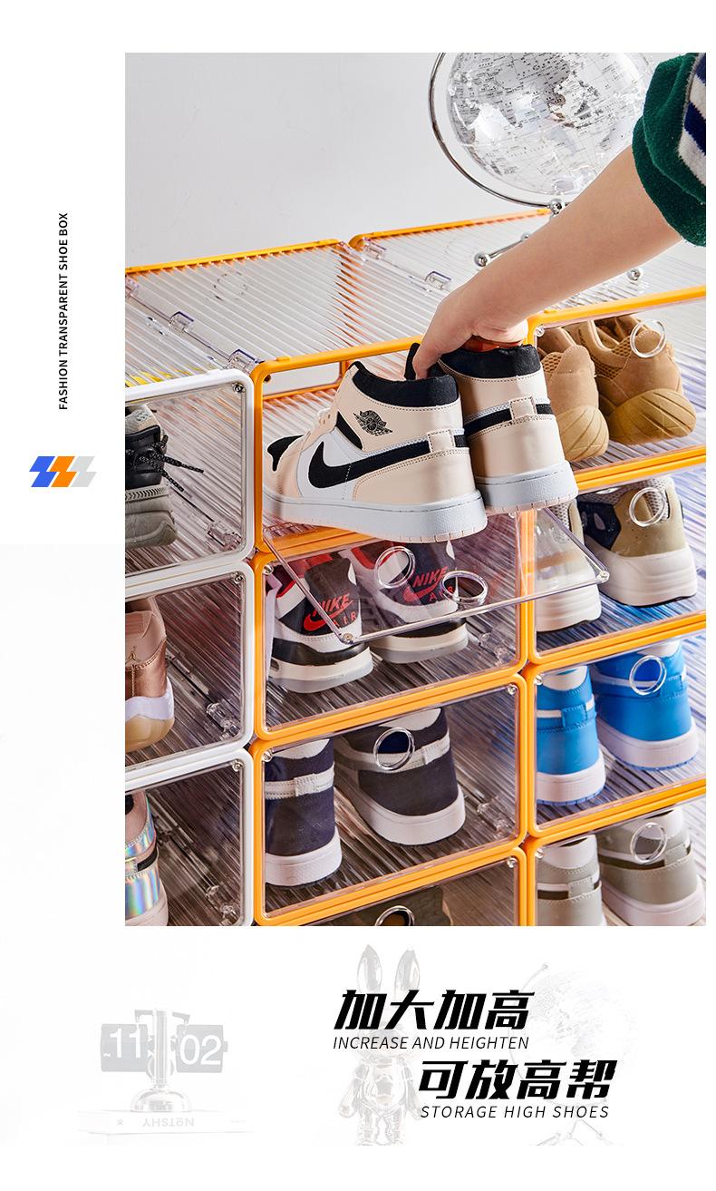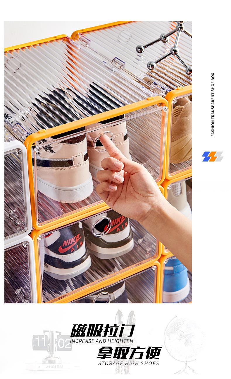 Caja de zapatos de plástico transparente acrílico, apilable, para zapatillas, plegable, magnética, con apertura lateral