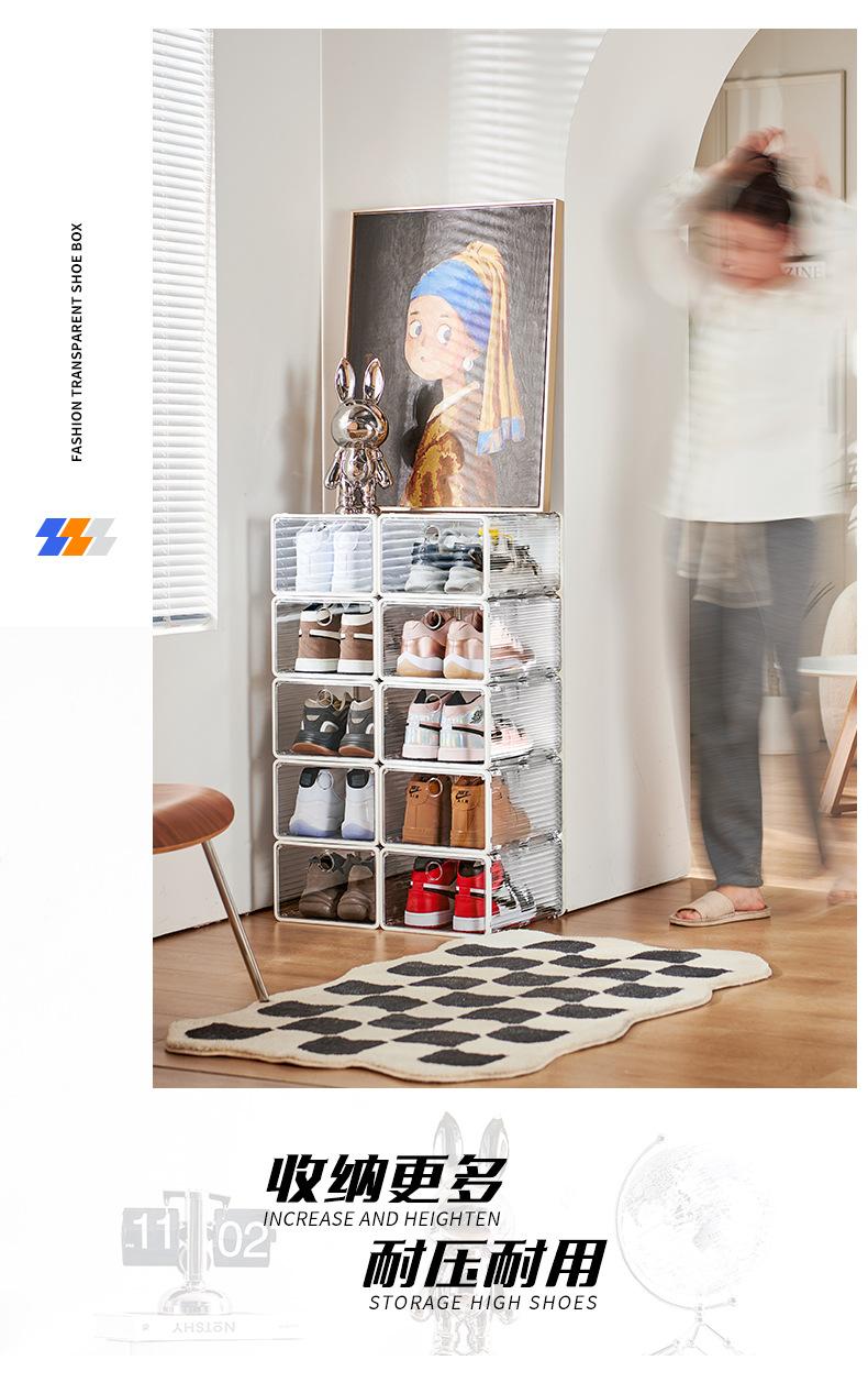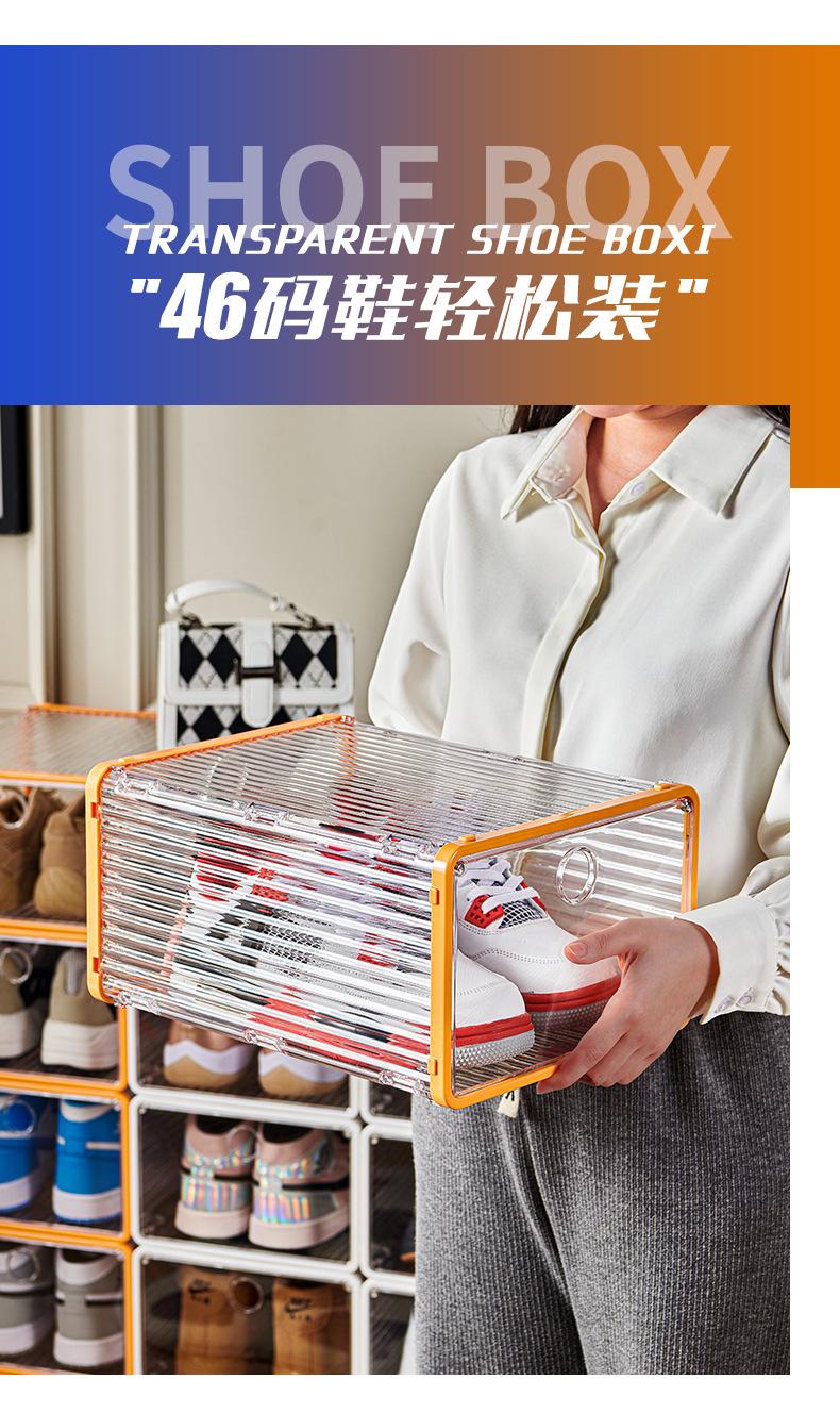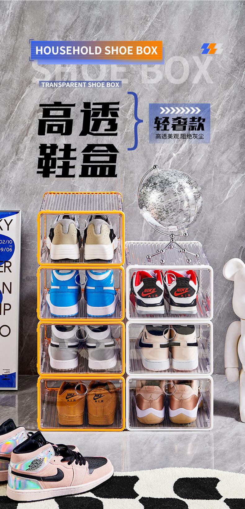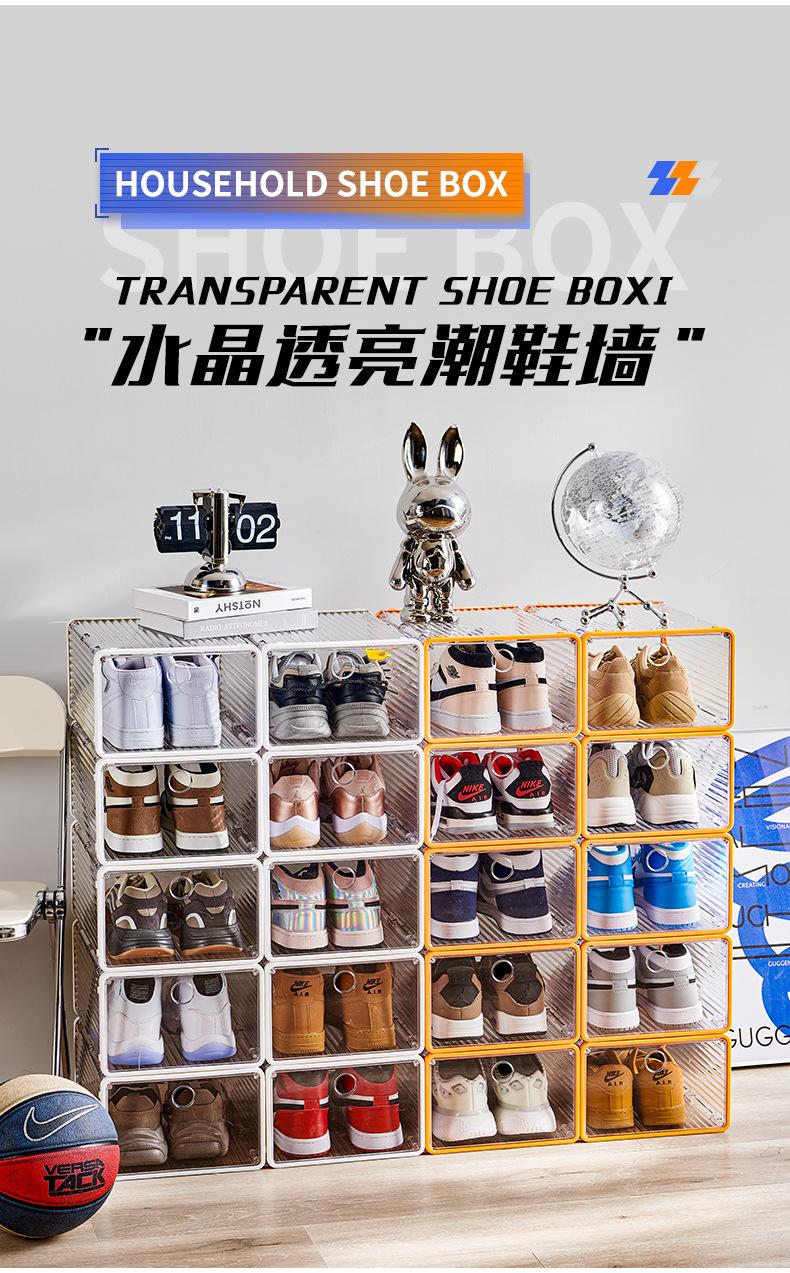 Caja de zapatos de plástico transparente acrílico, apilable, para zapatillas, plegable, magnética, con apertura lateral