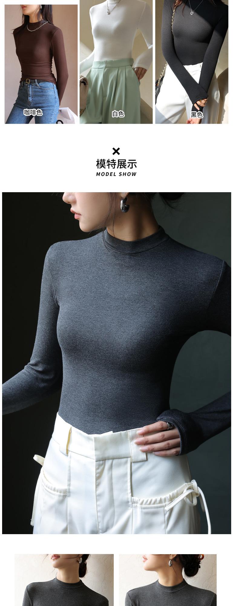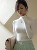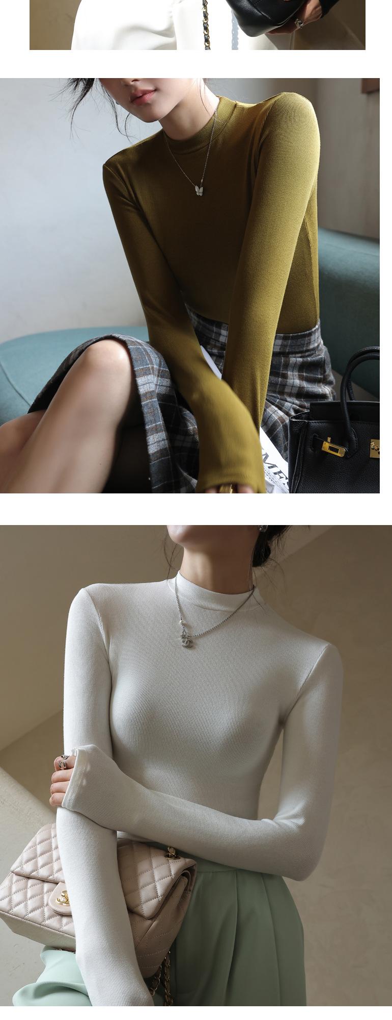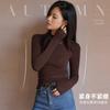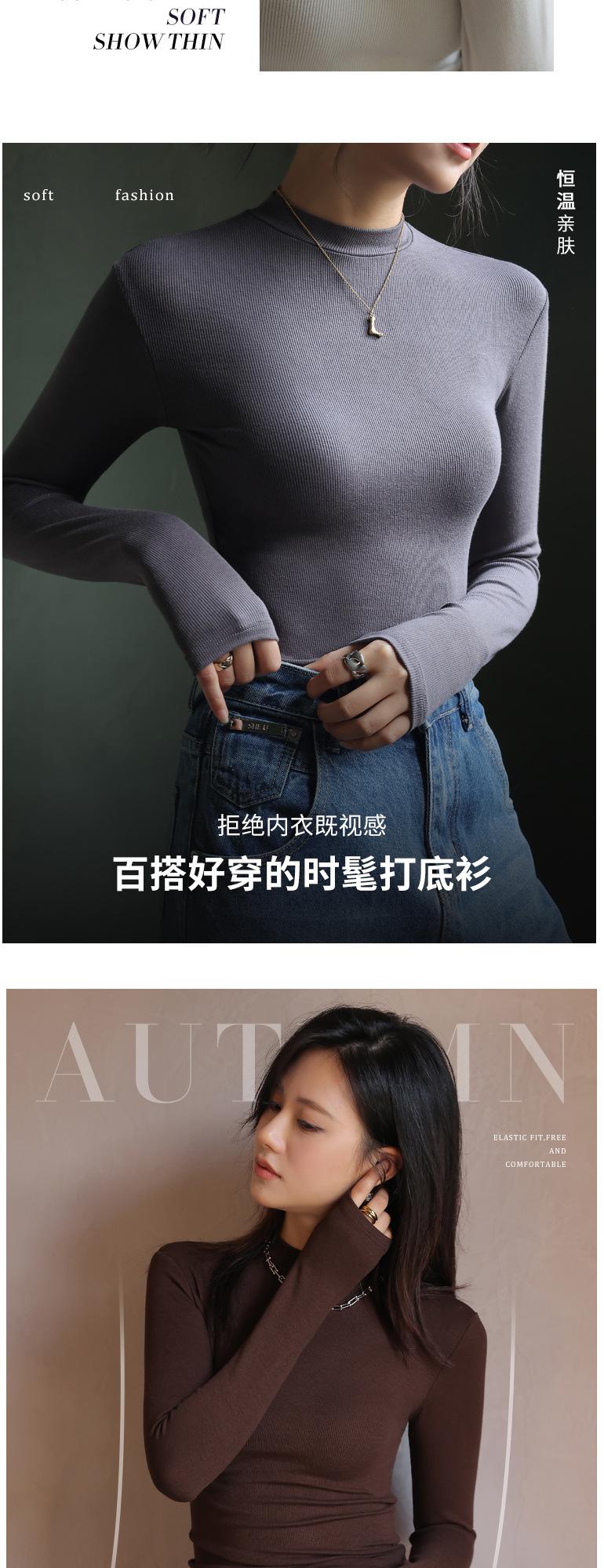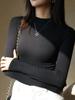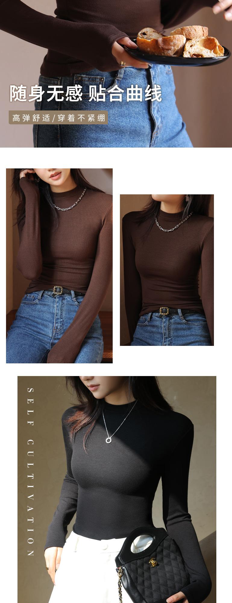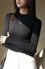Camiseta básica modal para mujer, otoño 2024, ajustada, adelgazante, con cuello medio alto, manga larga fina