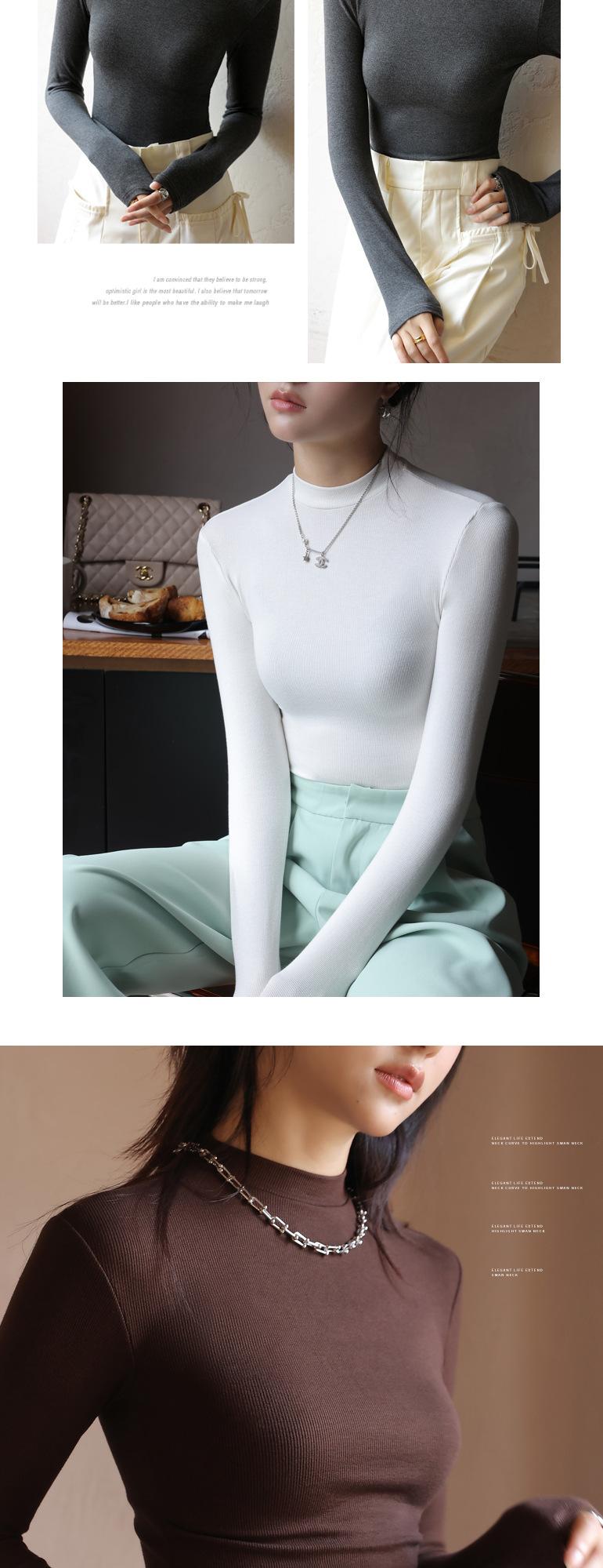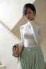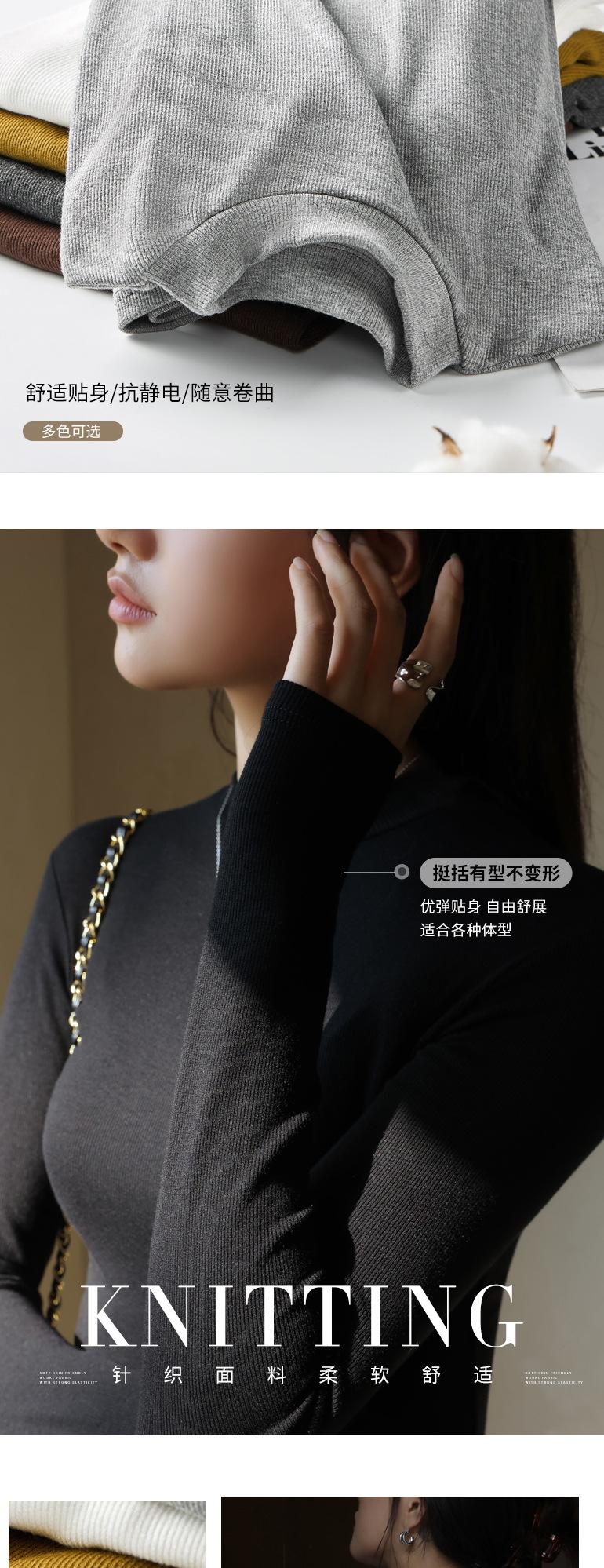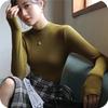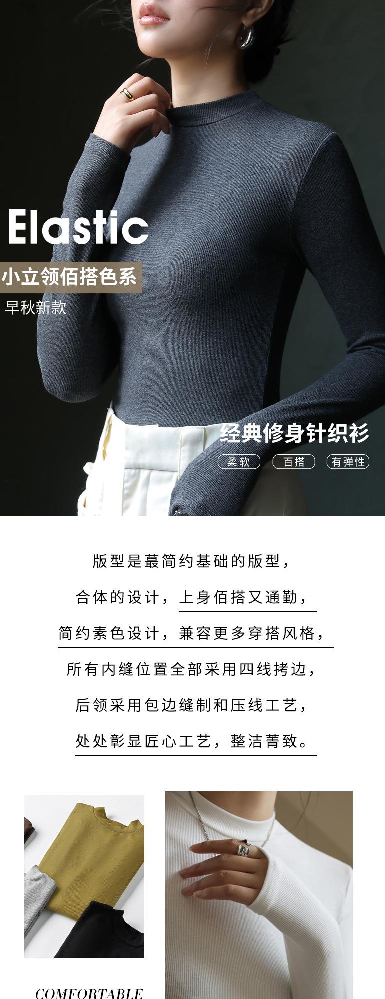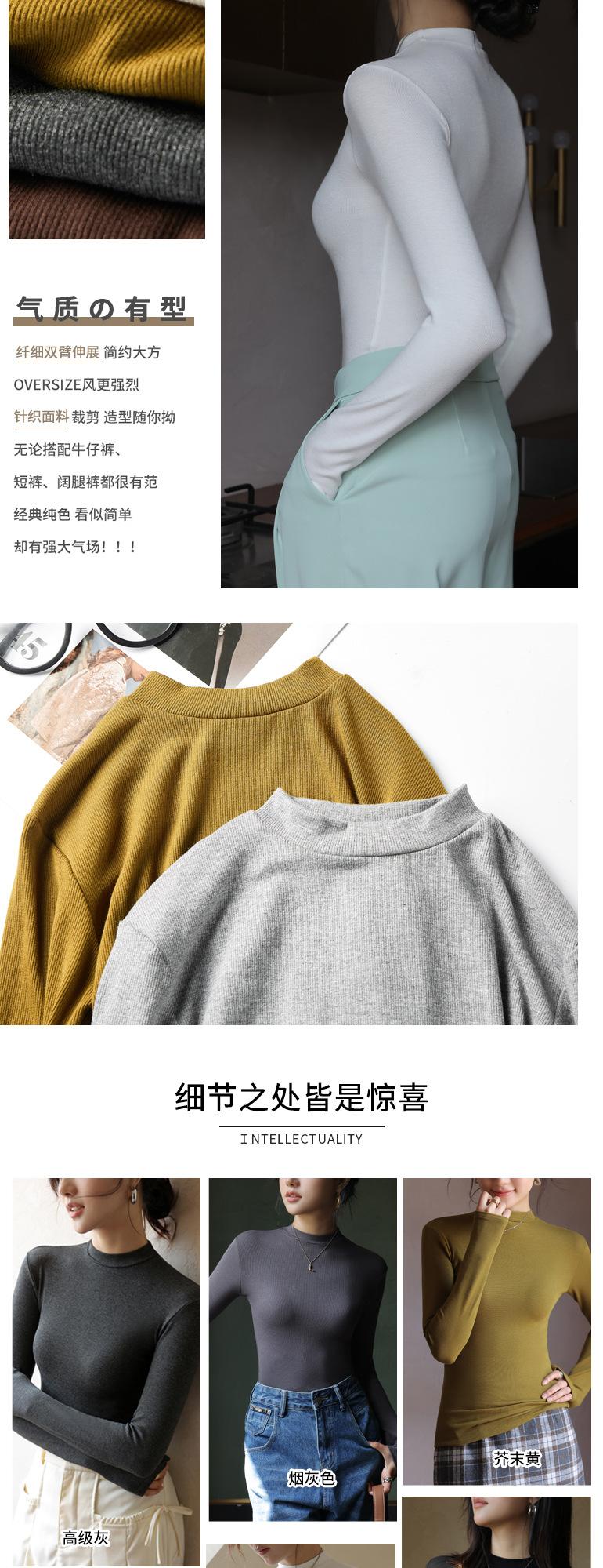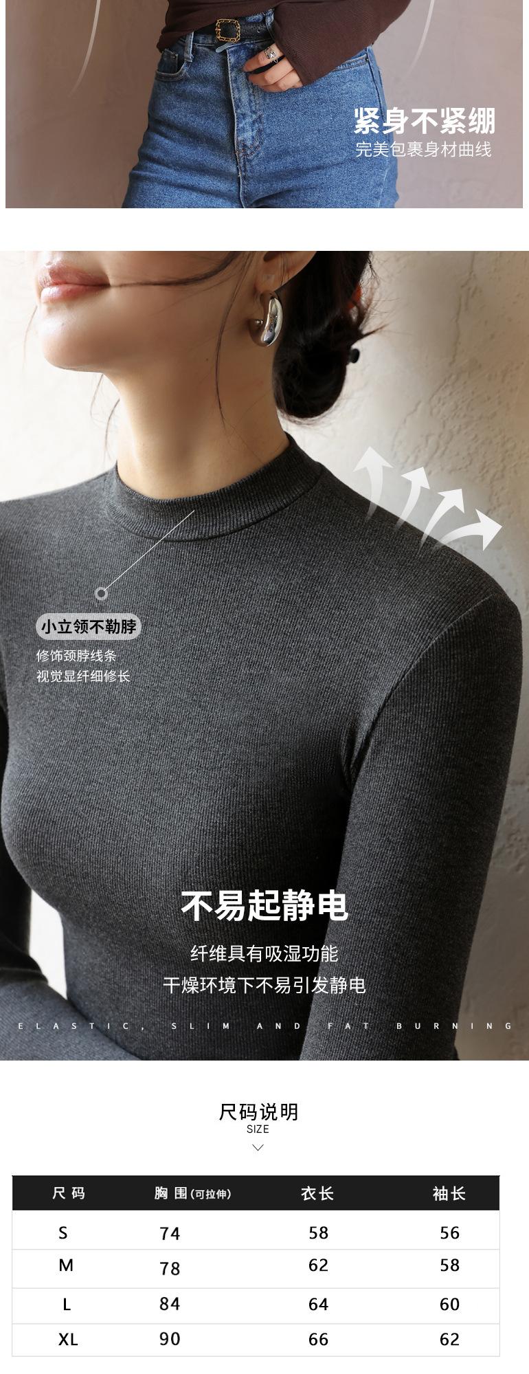 Camiseta básica modal para mujer, otoño 2024, ajustada, adelgazante, con cuello medio alto, manga larga fina