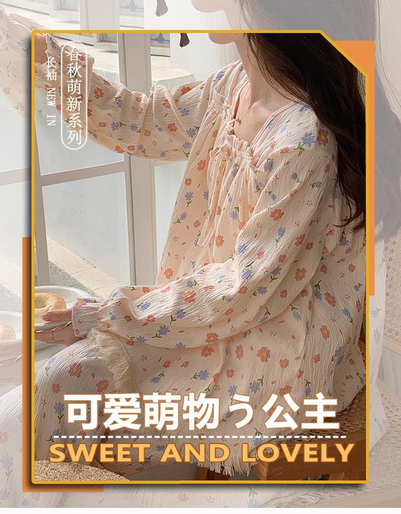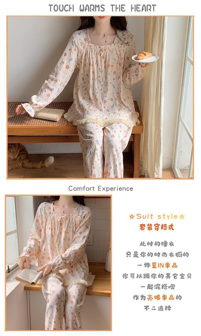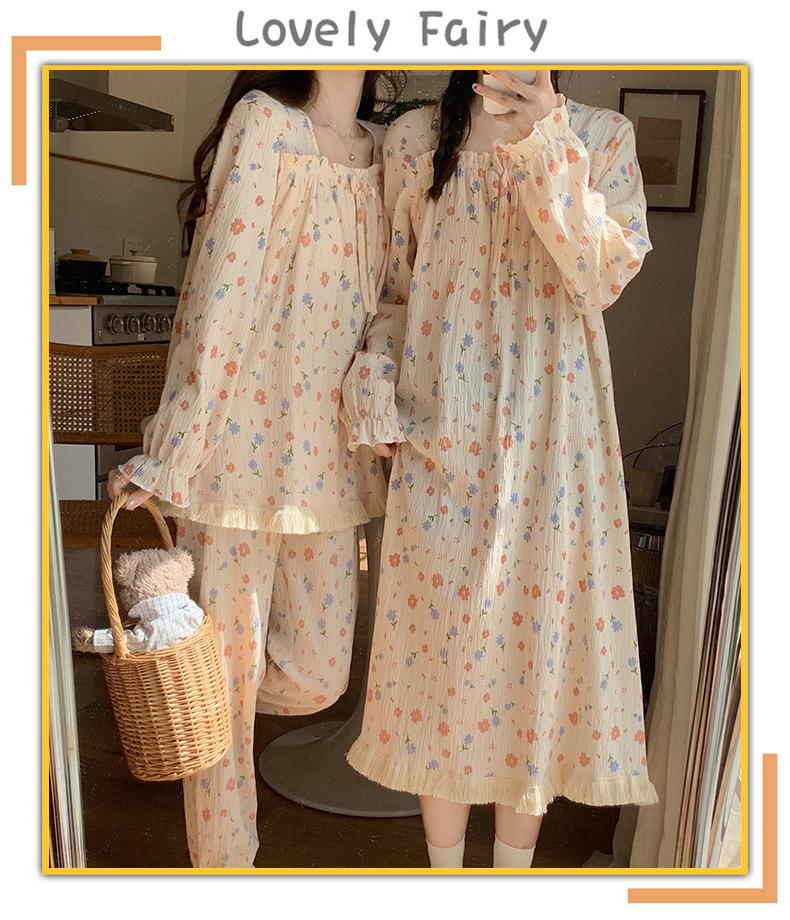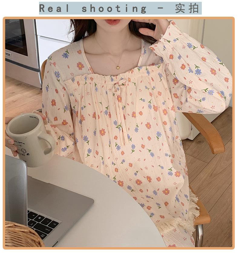 Pijama de otoño para mujer, de manga larga, de algodón crepé con almohadilla para el pecho, estilo hada dulce, fino y holgado, ropa de abrigo para el hogar