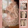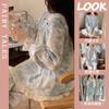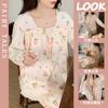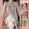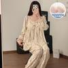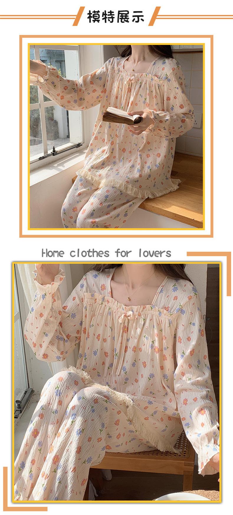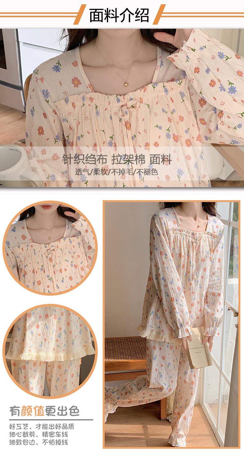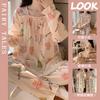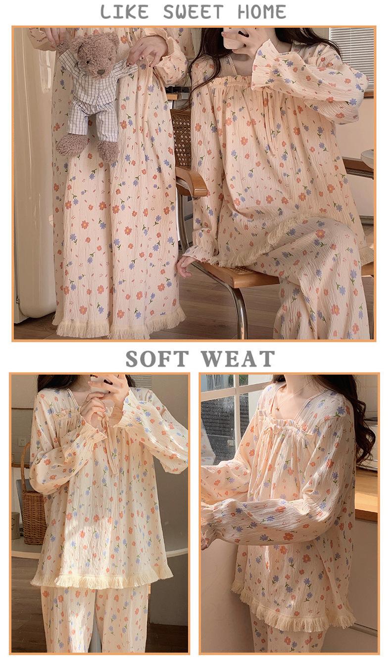 Pijama de otoño para mujer, de manga larga, de algodón crepé con almohadilla para el pecho, estilo hada dulce, fino y holgado, ropa de abrigo para el hogar