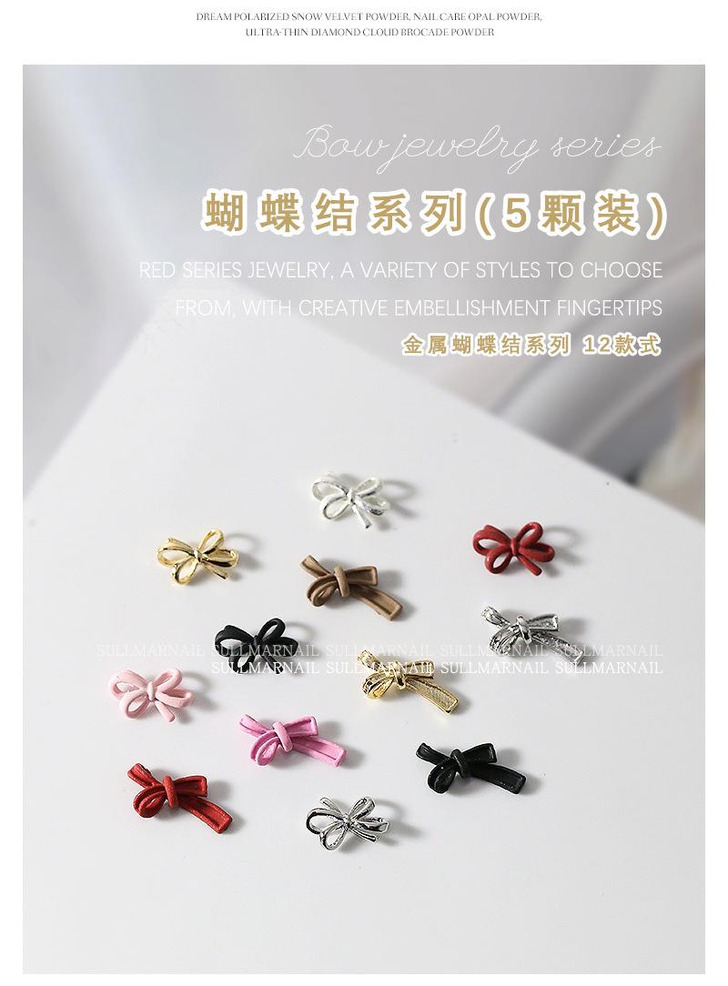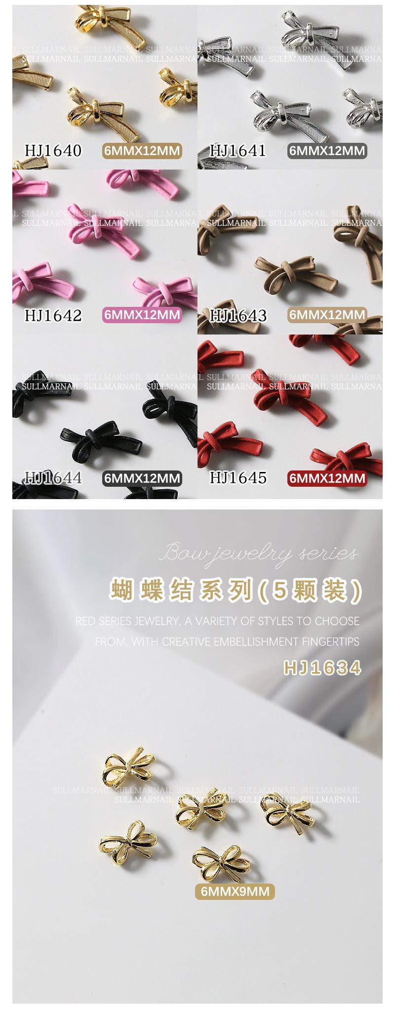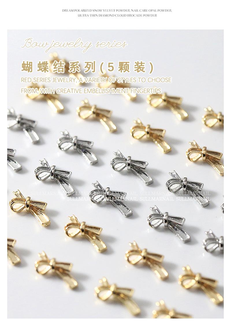 Arte de Uñas Lazo Lazo Simple Metálico Dorado Plateado Cinta Tridimensional Lazo Accesorios de Decoración de Uñas 5 Piezas
