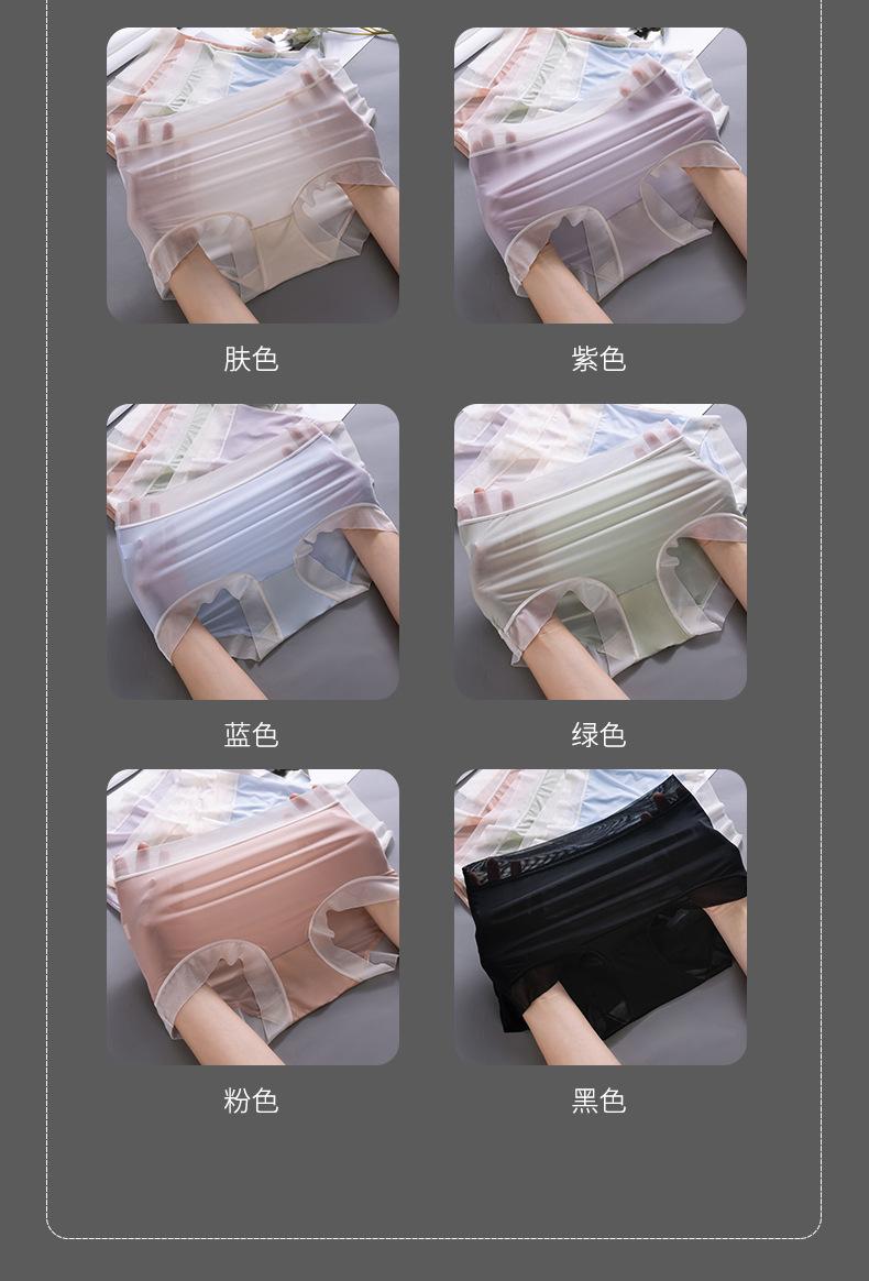 Ropa interior de cintura alta para mujer, transpirable, antibacteriana, de seda helada, sin costuras, transparente, talla grande
