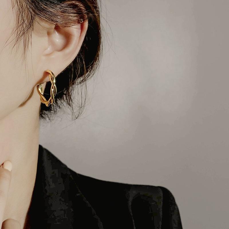 Versión coreana de pendientes de tejido retorcido de alto sentido, pendientes de círculo simple de moda, pendientes irregulares de temperamento único, venta al por mayor