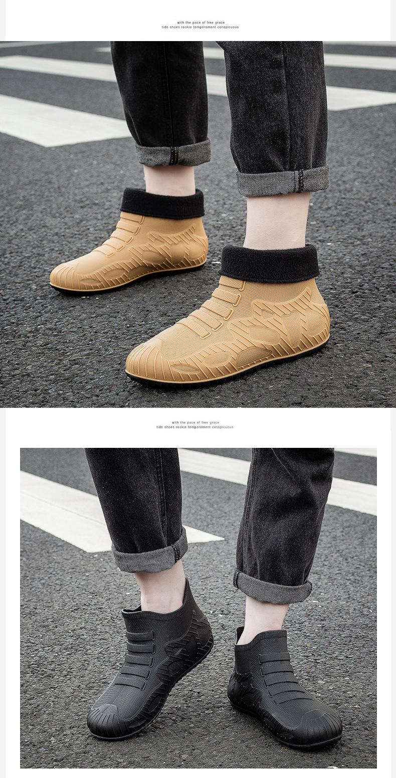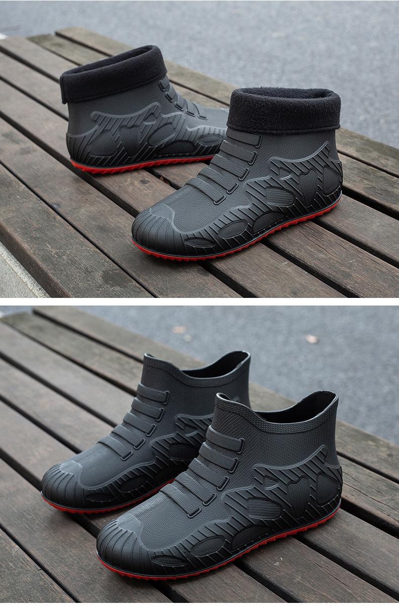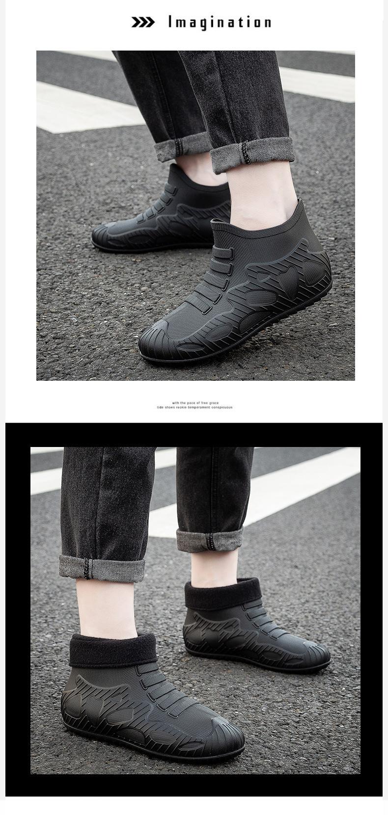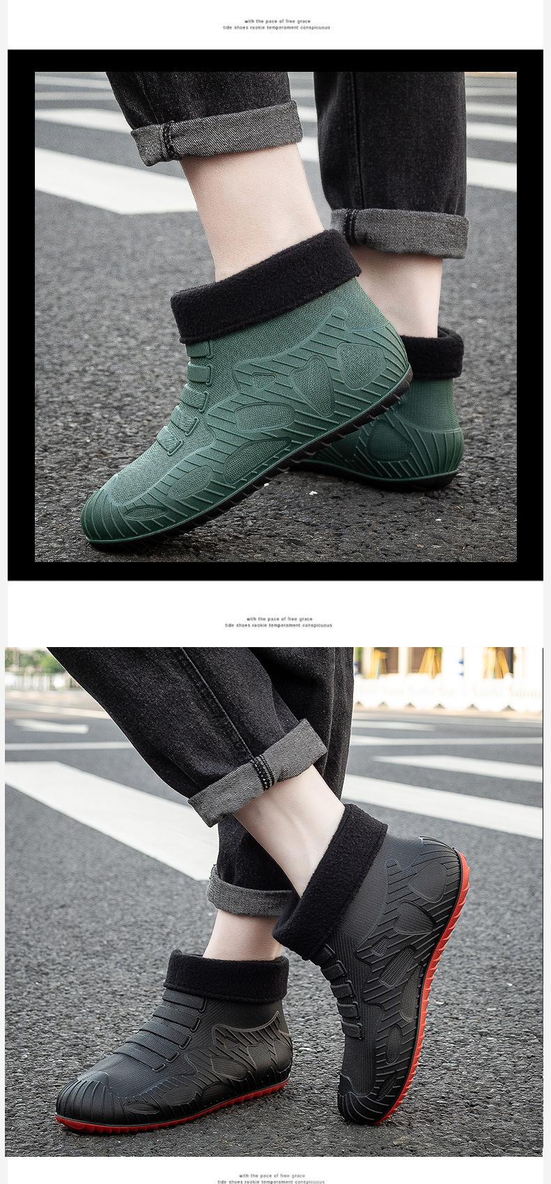 Nuevos zapatos de lluvia de tubo corto para hombre, de moda, atmosféricos, impermeables, de algodón, cálidos para exteriores e invierno.