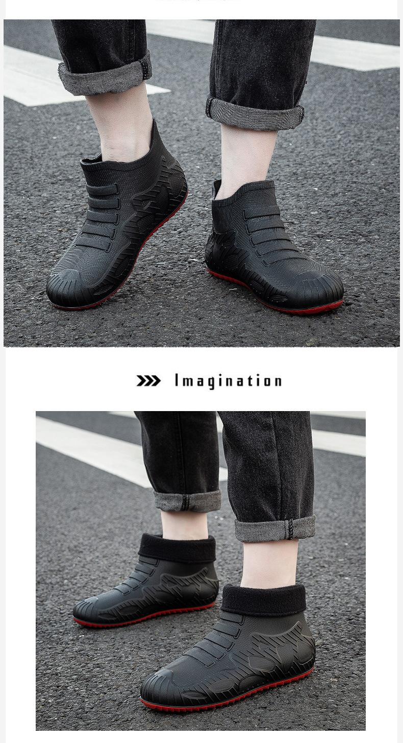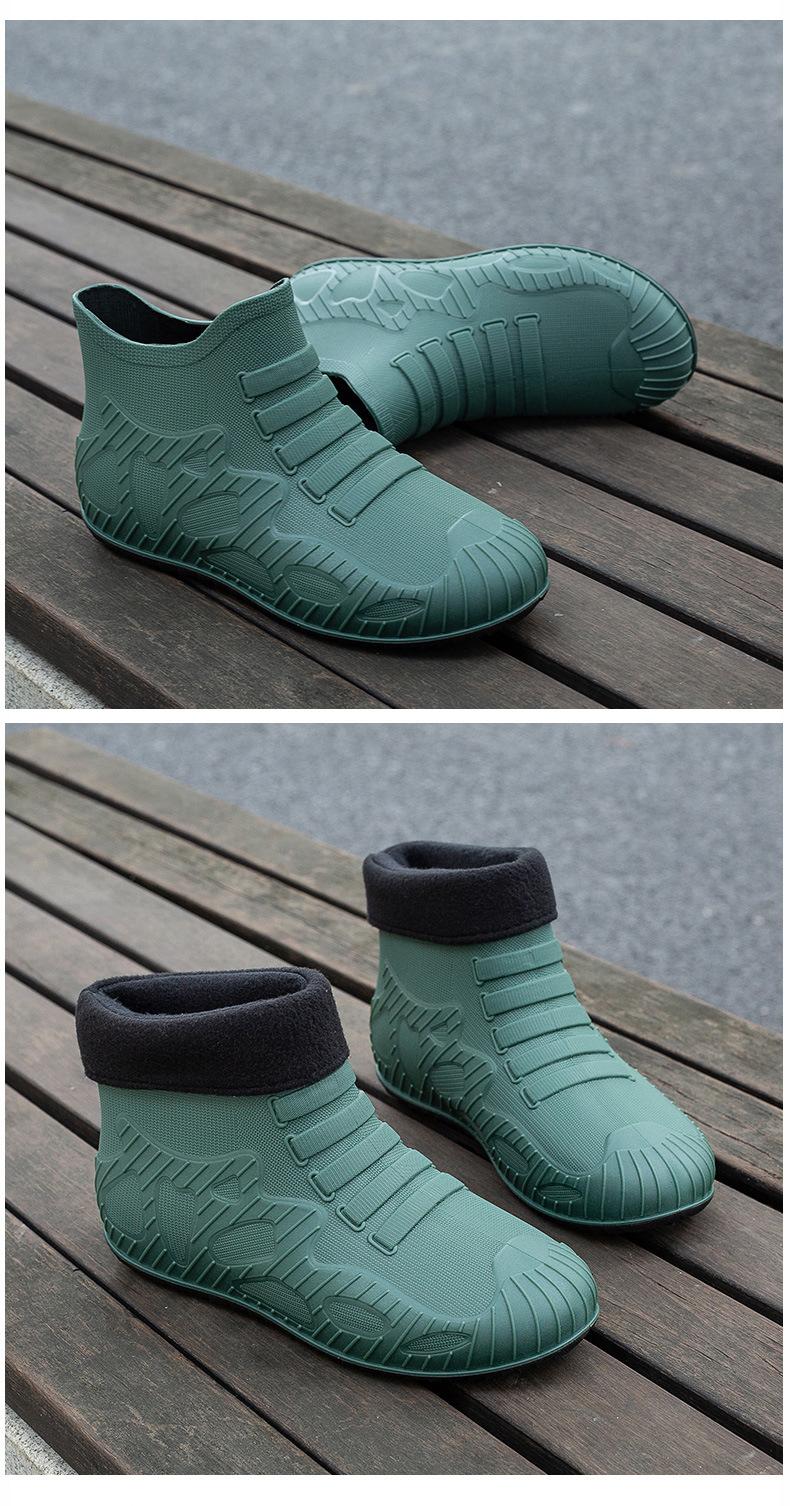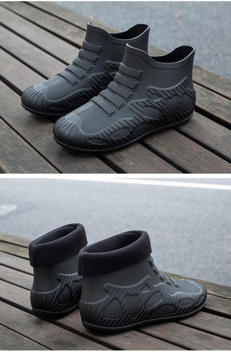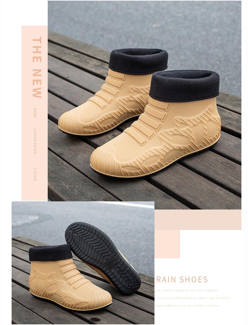 Nuevos zapatos de lluvia de tubo corto para hombre, de moda, atmosféricos, impermeables, de algodón, cálidos para exteriores e invierno.