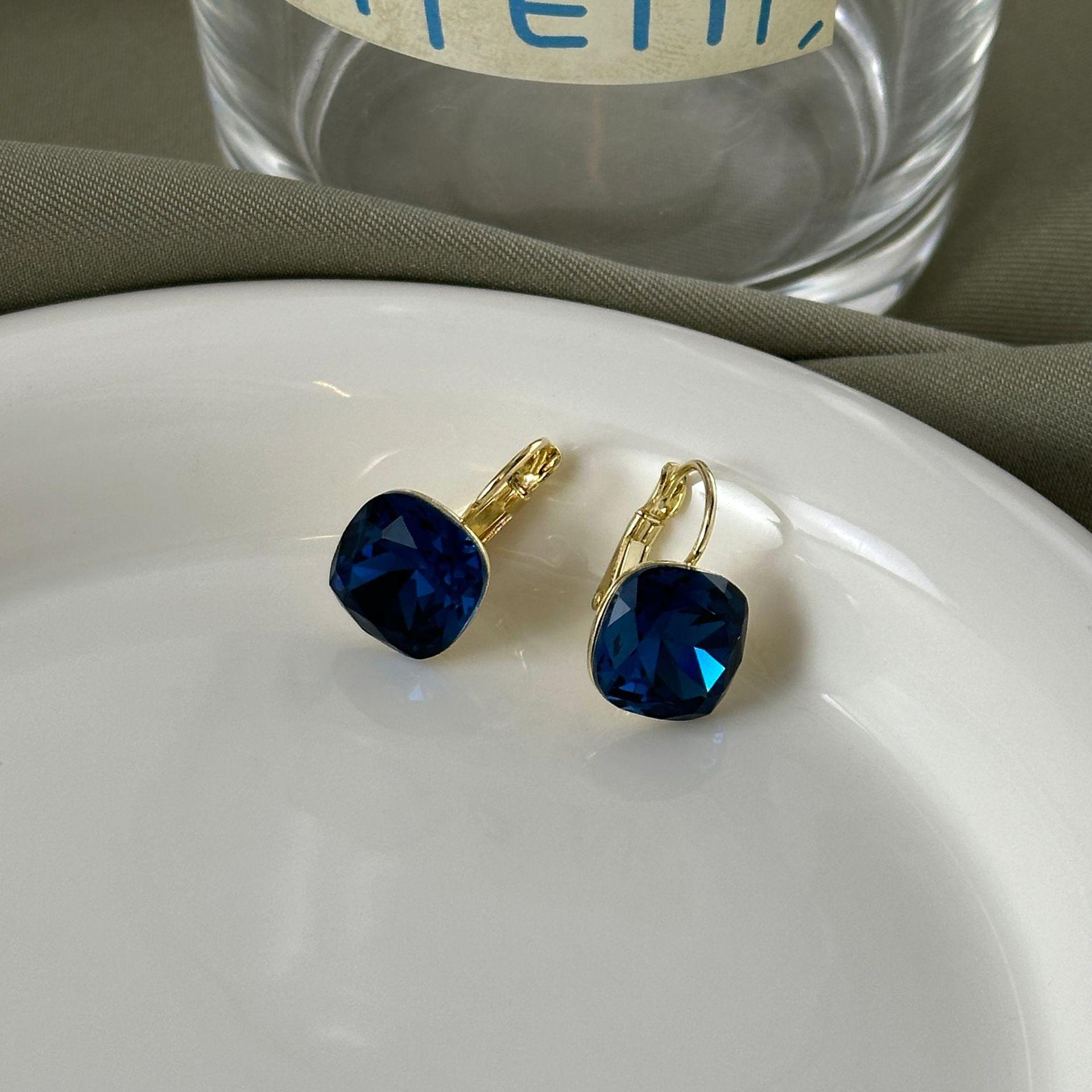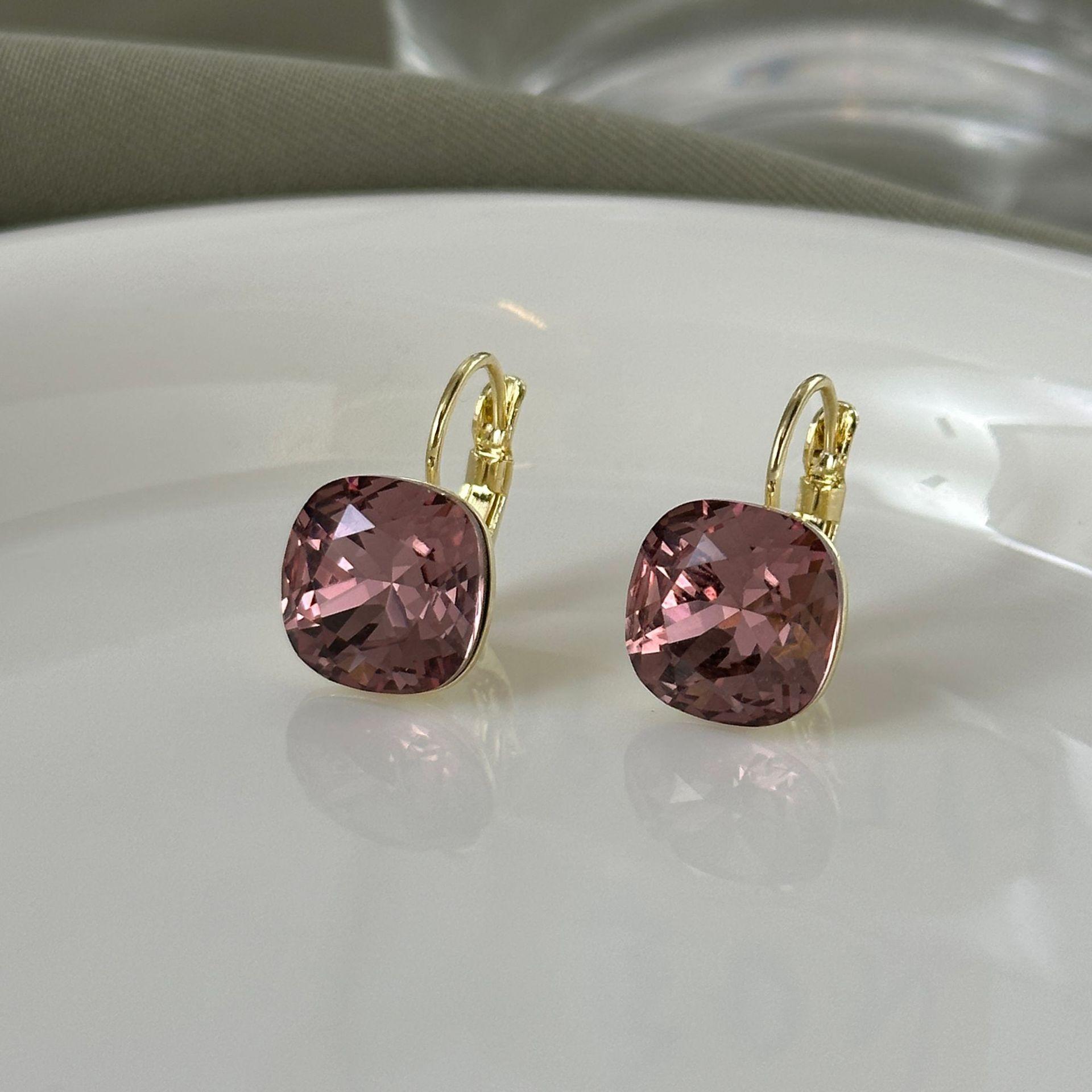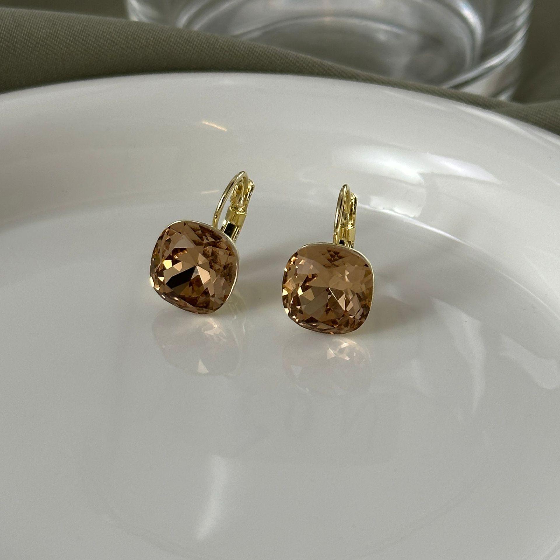 Aretes Cuadrados Geométricos Clásicos de Cristal Austriaco, Aretes de Lujo Ligero y Alta Gama, Aretes Simples y de Moda para Mujeres