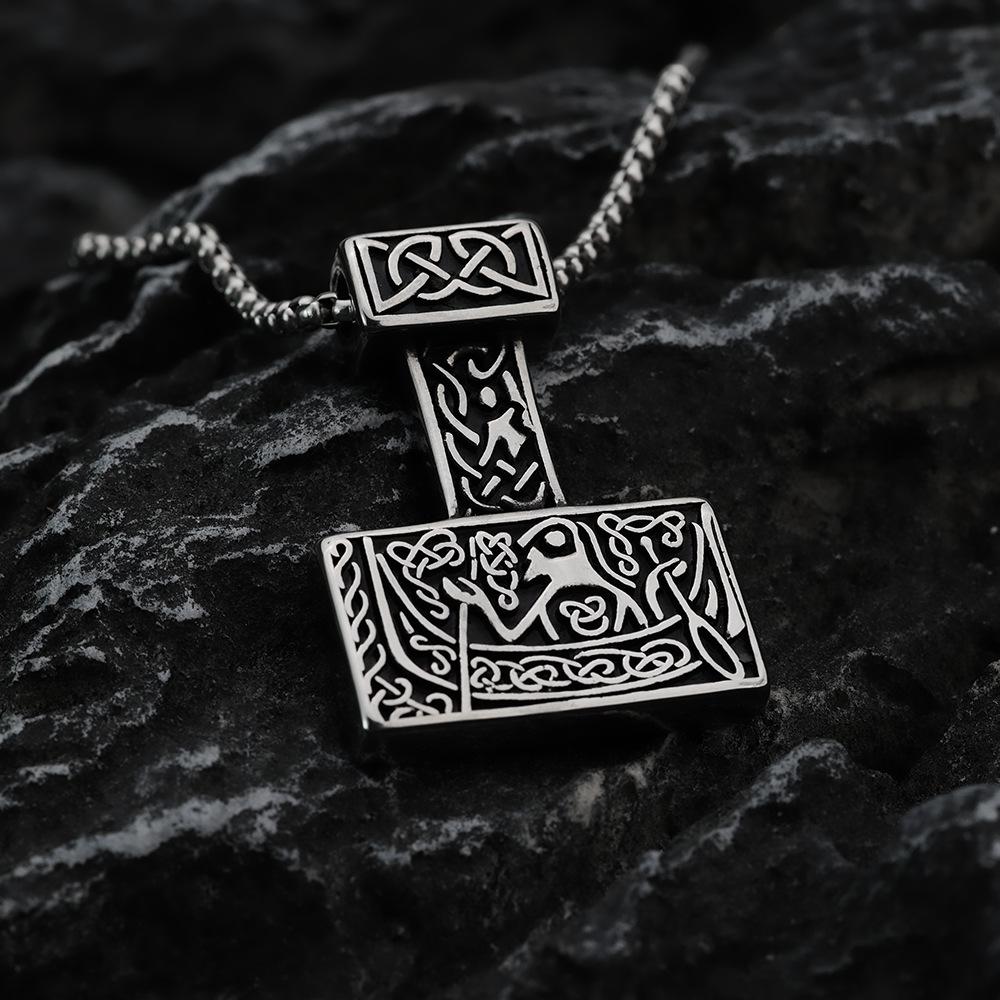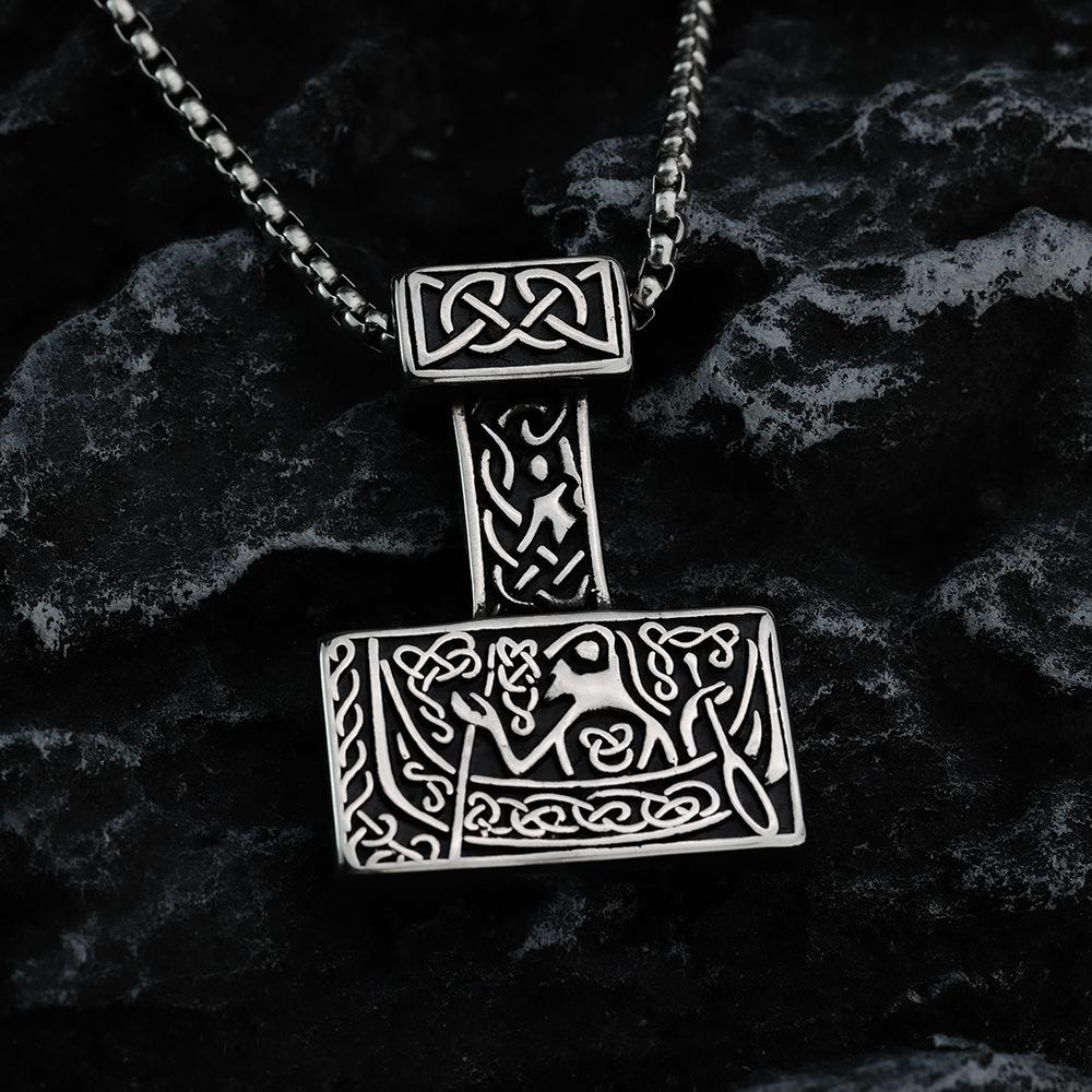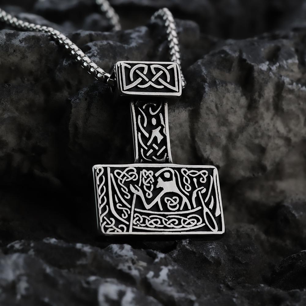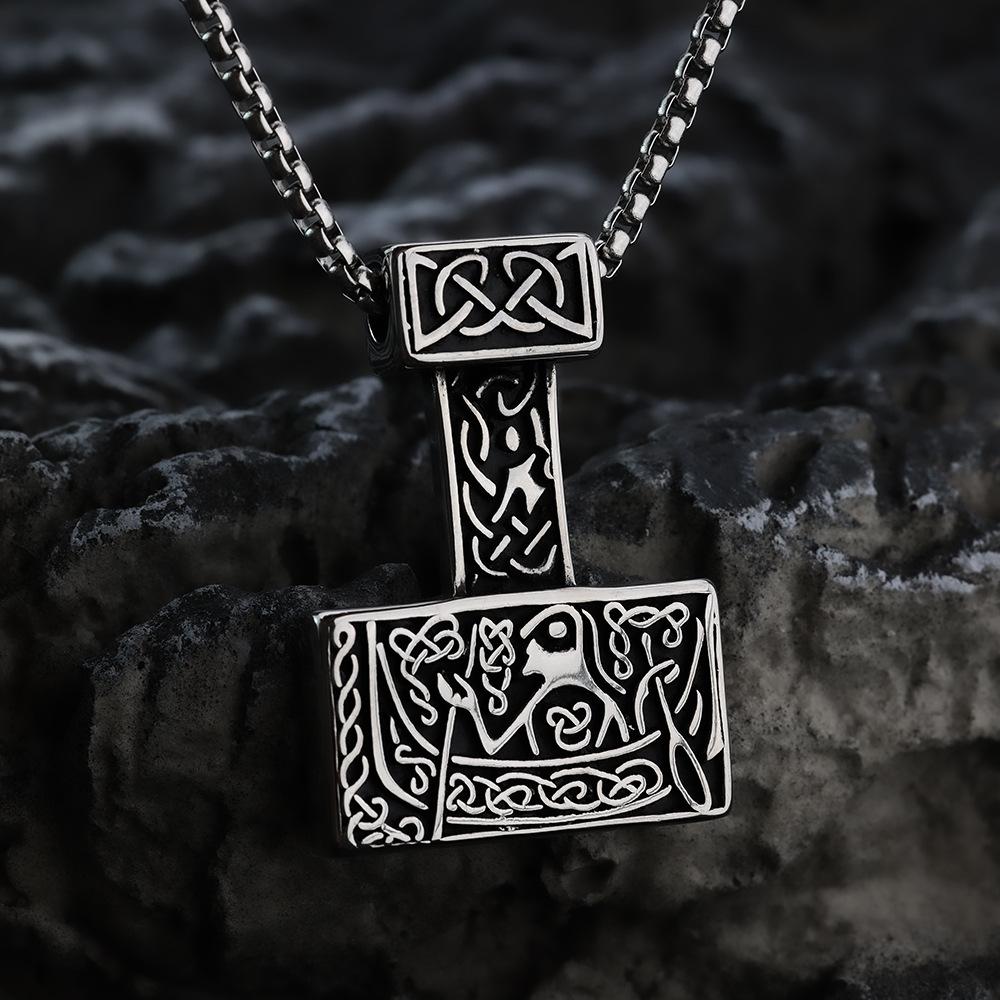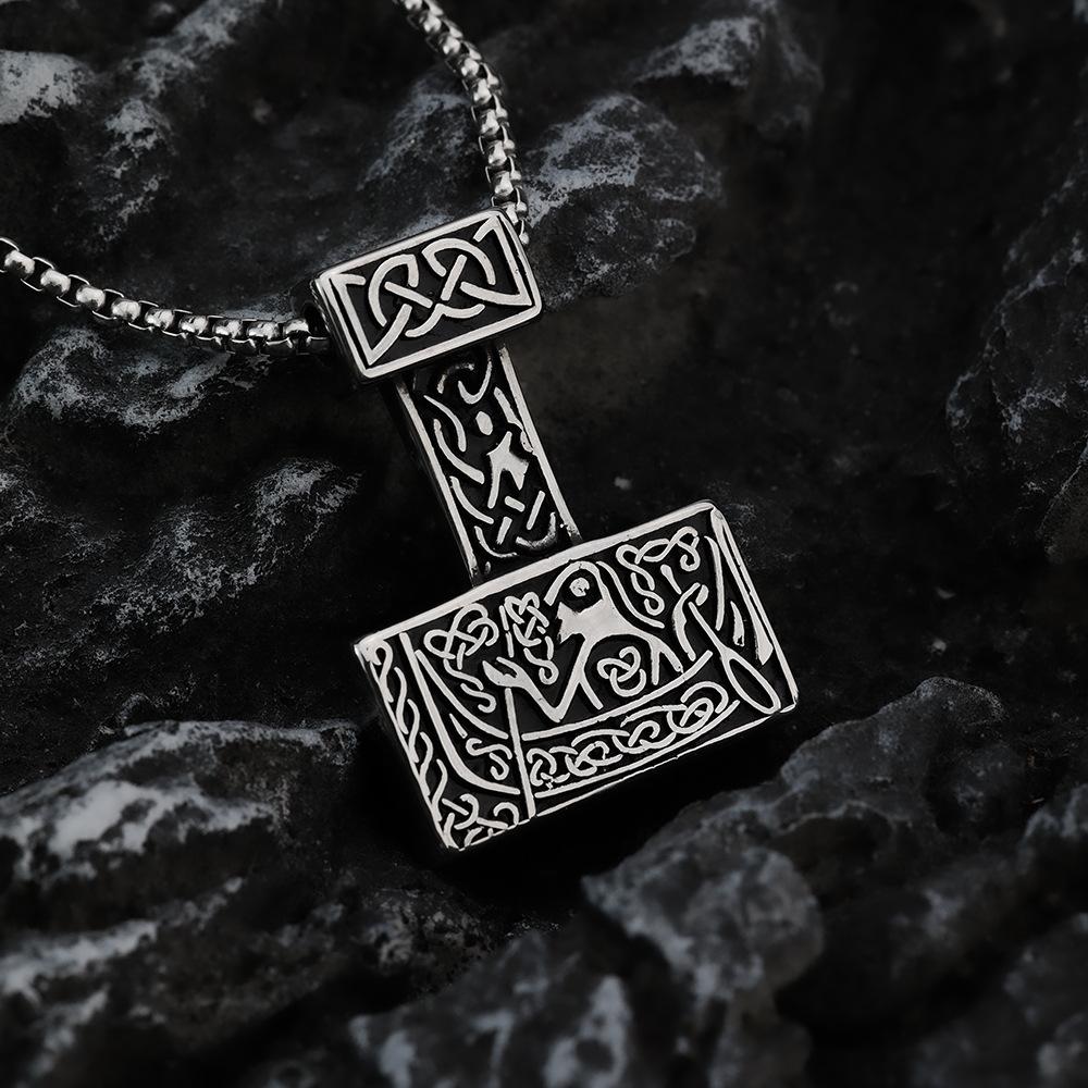 Venta al por mayor de joyas europeas y americanas, colgante de acero de titanio para hombre, collar de acero inoxidable, martillo vikingo Thor vintage