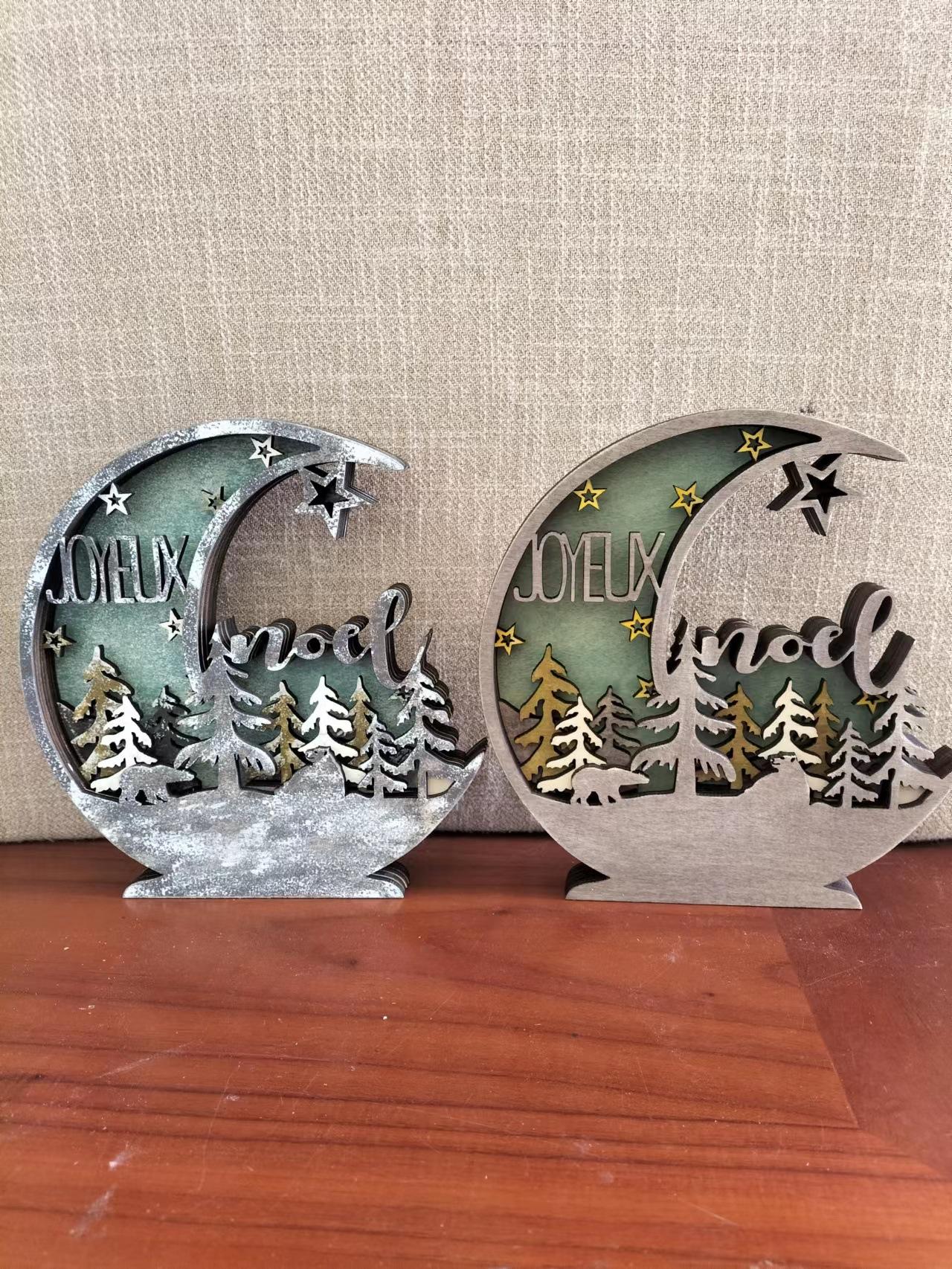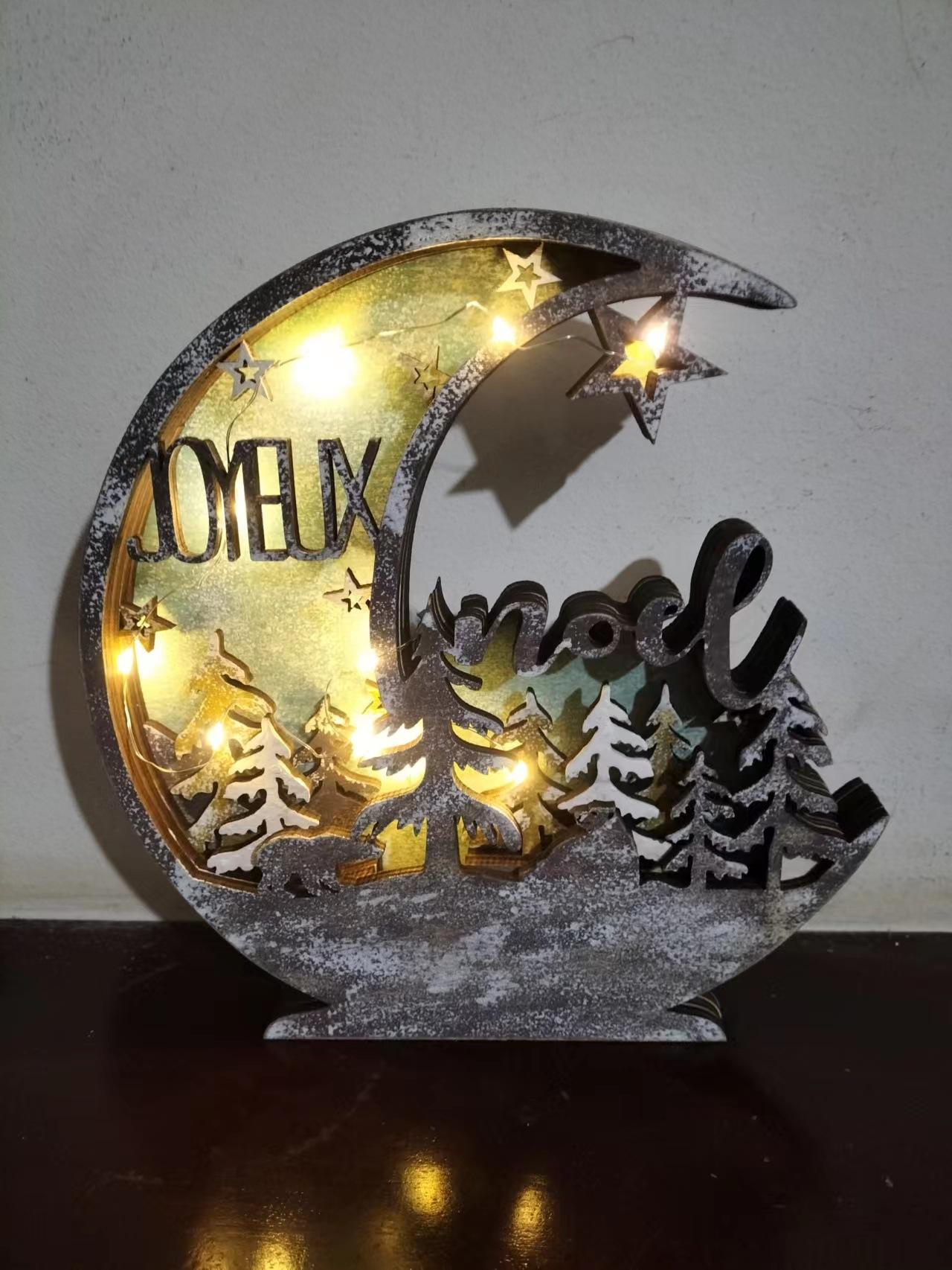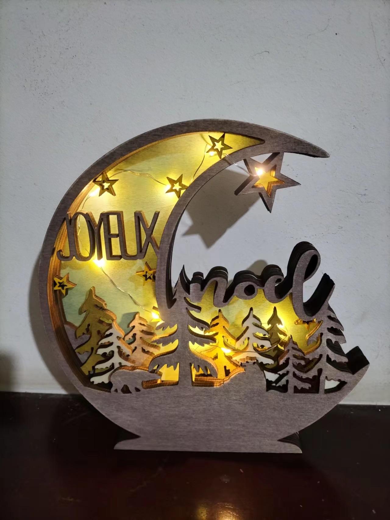 Nueva decoración navideña transfronteriza, luna de madera, árbol de Navidad, decoración navideña para el hogar, adornos colgantes