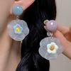 Pendientes asimétricos de margaritas Mori de moda, pendientes de flores colgantes, pendientes de clip con placa de incienso de mosquitos, primavera y verano