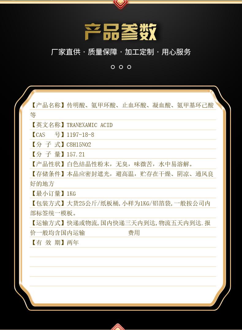 Ácido tranexámico 99% ácido tranexámico hemostático ácido cíclico ácido de coagulación materias primas cosméticas 1197-18-8 productos genuinos en stock