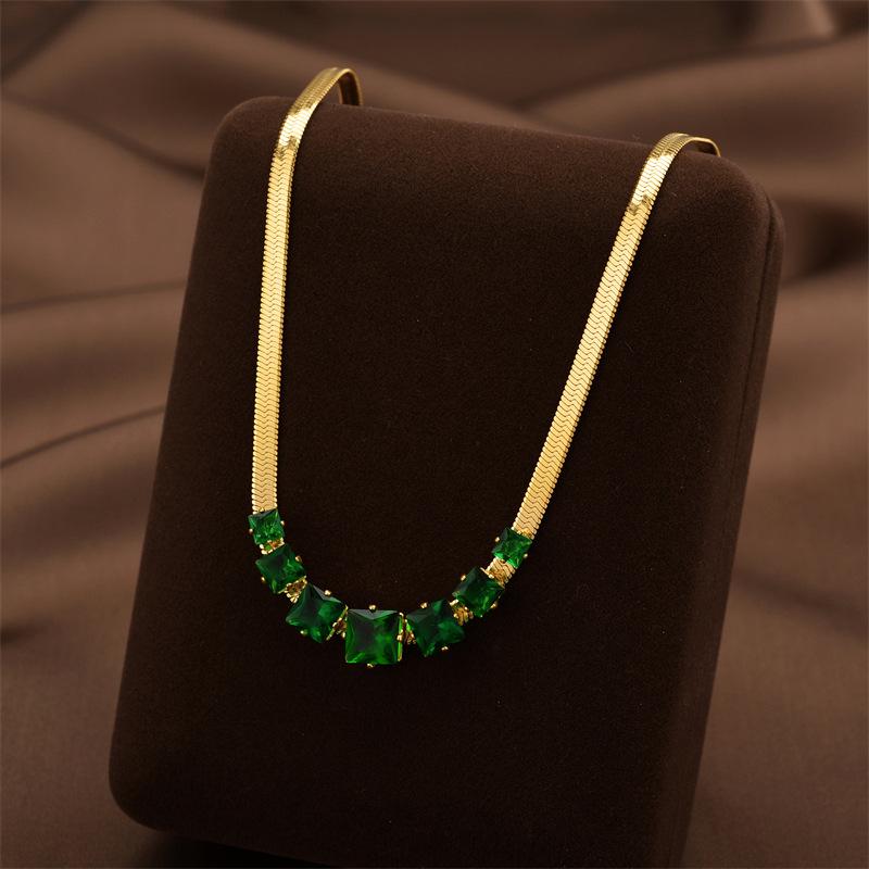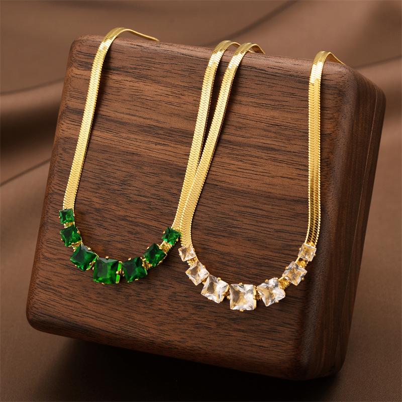 Cadena de clavícula personalizada de circonita micro incrustada de alta gama europea y americana transfronteriza, collar de acero de titanio que no se decolora, nicho de lujo ligero, rojo en línea