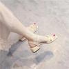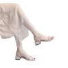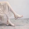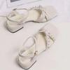 Sandalias de Mujer 2024 Nuevo Verano Versátil Moda Todo Blanco Tacón Bajo Cuadrado Plano Punta Abierta Peep-Toe