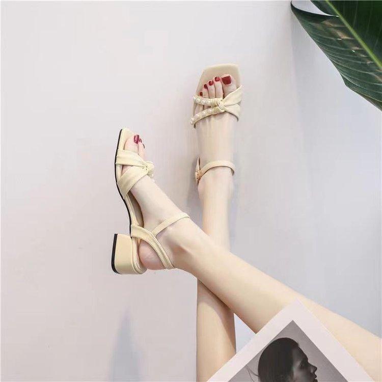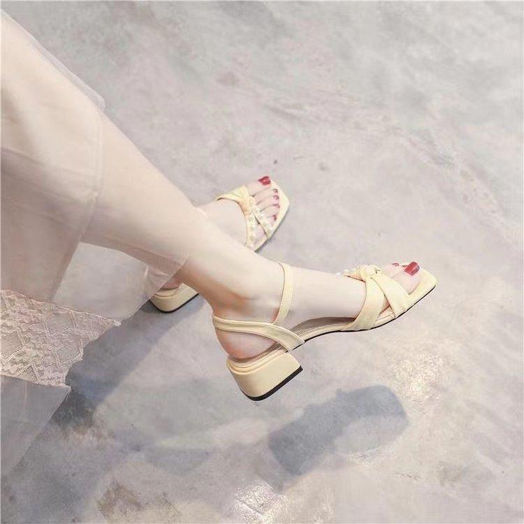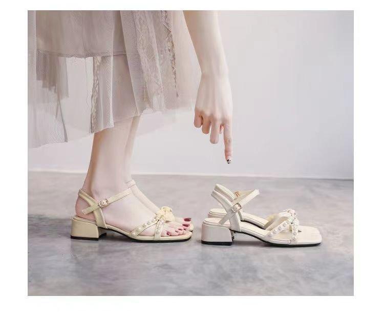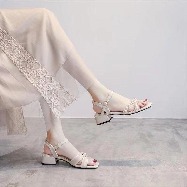 Compra Sandalias de Mujer 2024 Nuevo Verano Versátil Moda Todo Blanco Tacón Bajo Cuadrado Plano Punta Abierta Peep-Toe al por mayor en Joom.pro