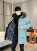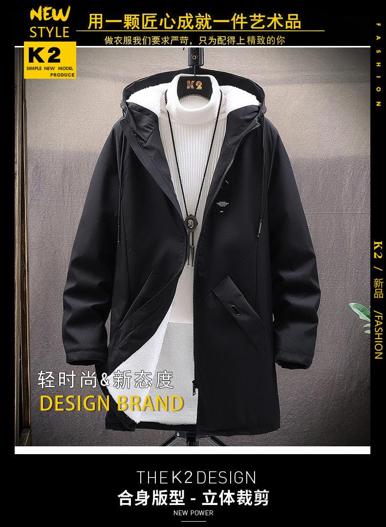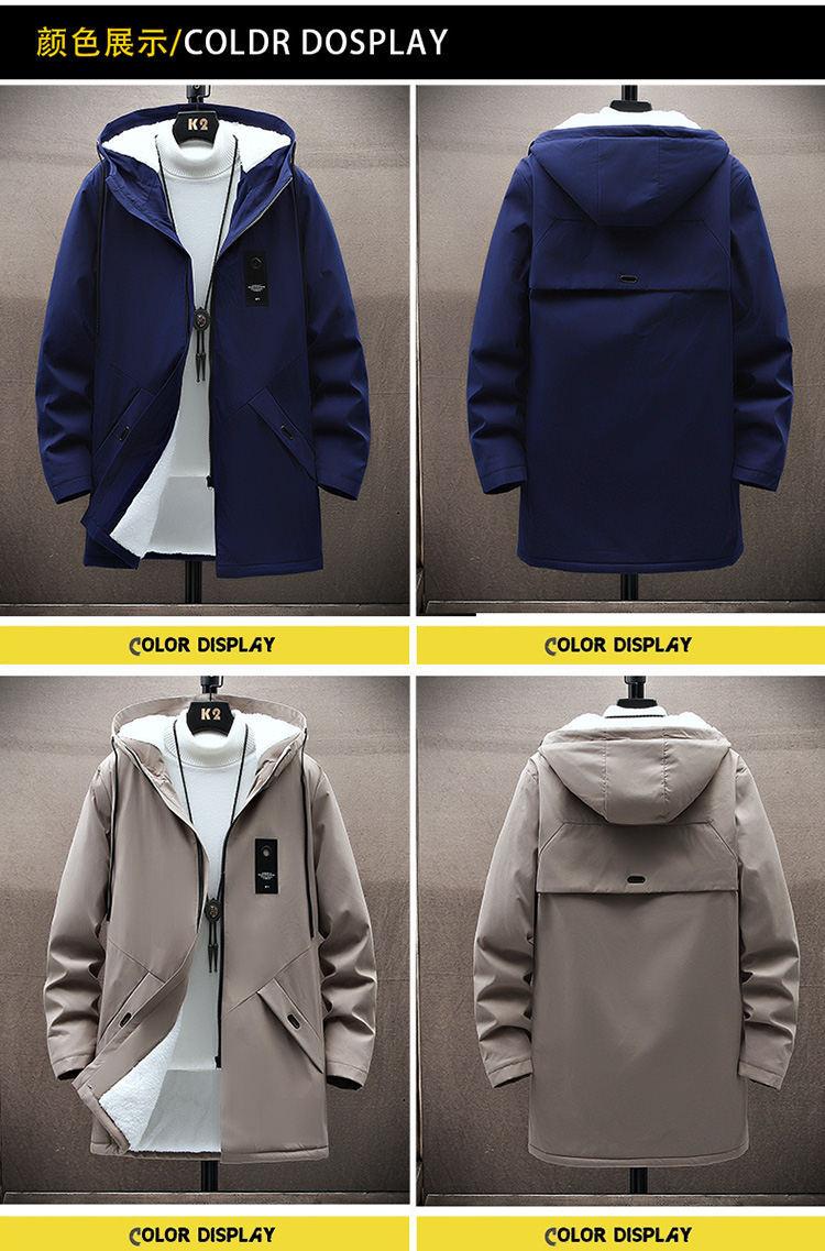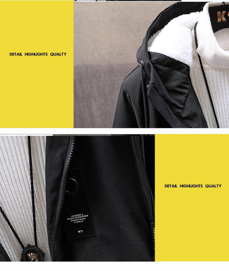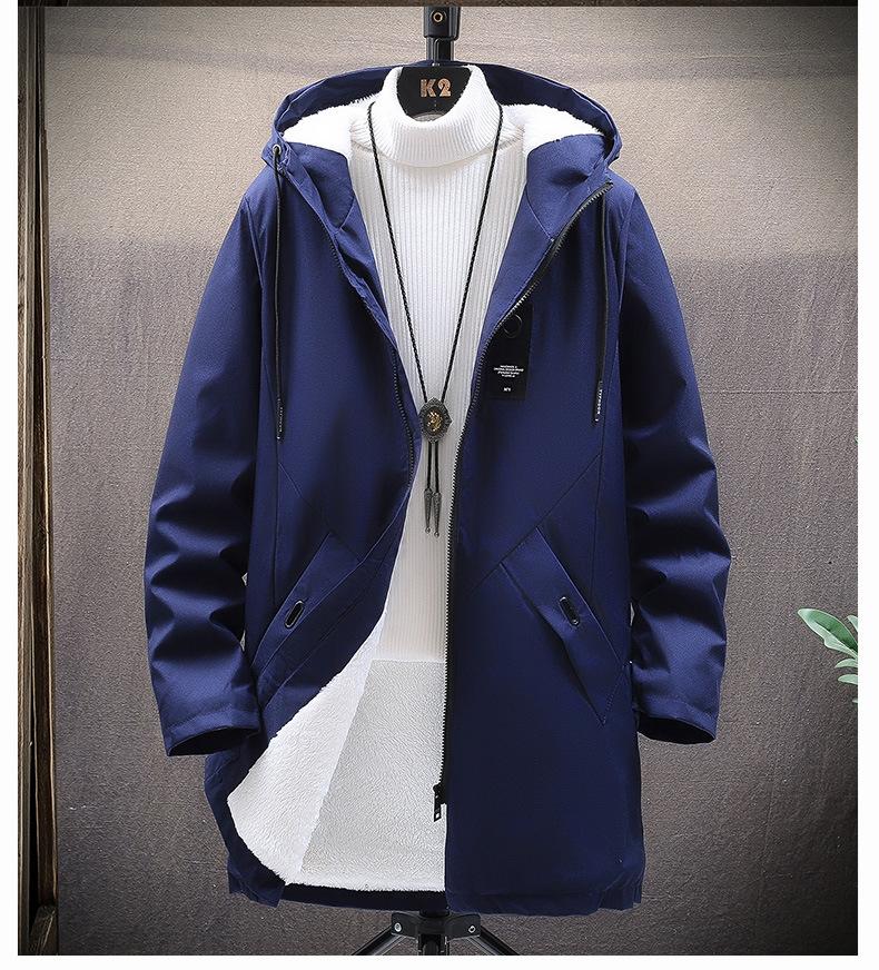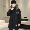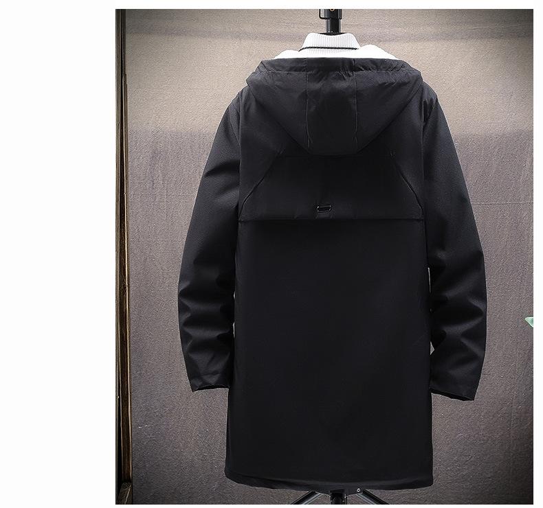Gabardina gruesa de longitud media con forro polar y capucha para jóvenes, popular para otoño e invierno, chaqueta acolchada de algodón para hombre.