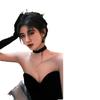 Ju Jingyi con collar de terciopelo dorado, elegante collar de terciopelo negro retro, gargantilla, collar de cadena de clavícula