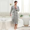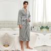 Albornoz de color liso con solapa transfronteriza europea y americana, albornoz de casa, camisón largo con solapa para hombre