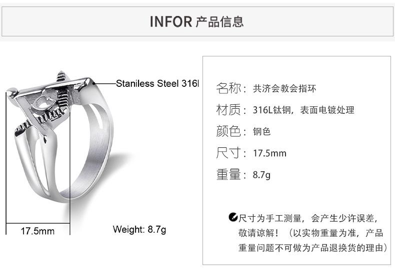 Joyería Creativa Europea y Americana de Acero Inoxidable Anillo de Iglesia Masónica Anillo Personalizado de Acero de Titanio para Hombre Anillo con Letra AG