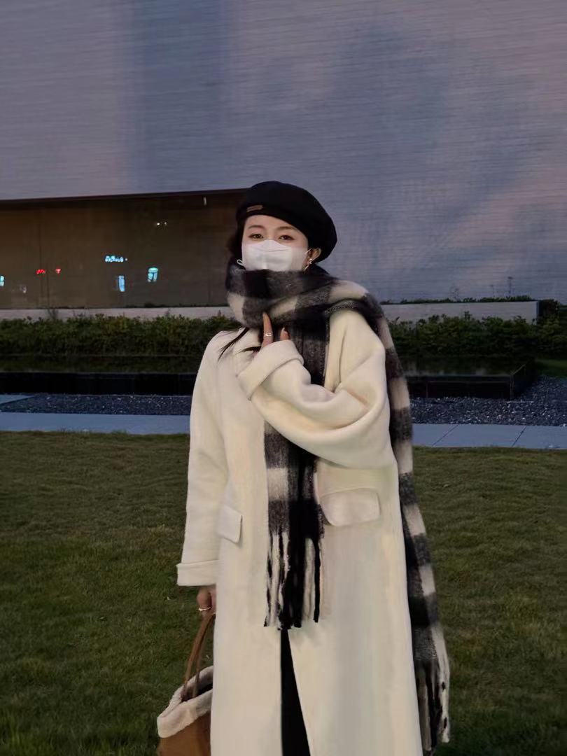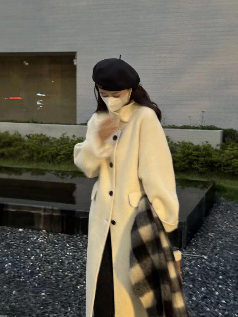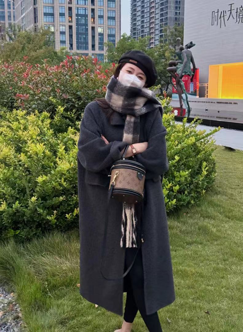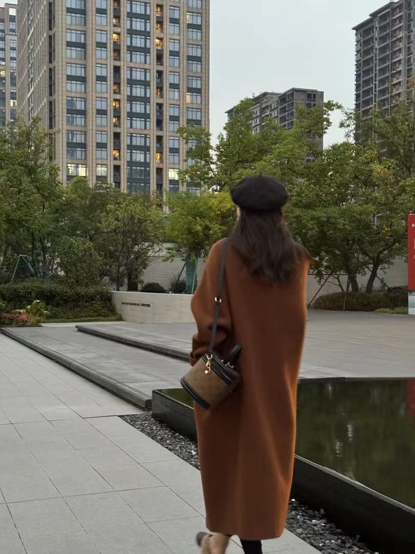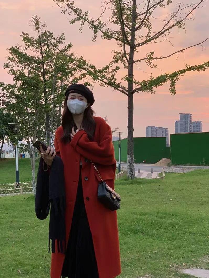Otoño e Invierno Abrigo Rojo de Lana Perezoso Abrigo Largo de Lana Cashmere de Doble Vista para Mujer con Elegante Elegante Siciliano