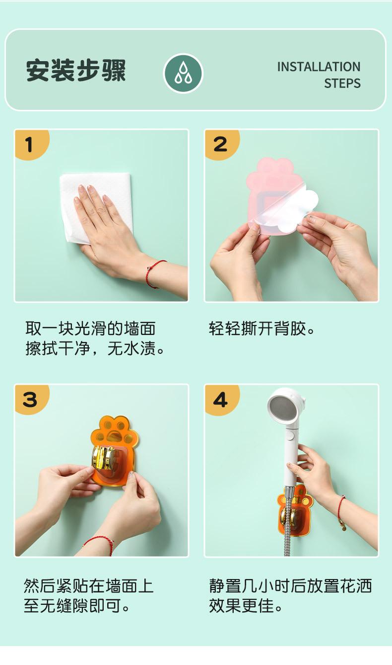 Soporte de ducha sin perforaciones para baño, ajustable, colgador de cabezal de ducha para niños, cabezal de ducha de lluvia, base fija de pared