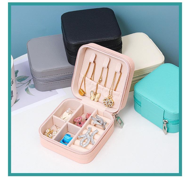 Caja de Joyería de Viaje Portátil Caja de Almacenamiento Caja para Anillos Collar Pendientes Pendientes Almacenamiento de Anillos Bolsa con Cremallera Caja de Joyería