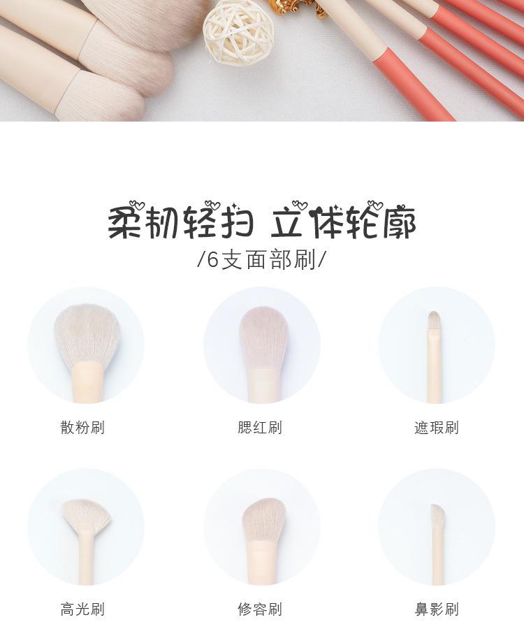 Set de 12 Brochas de Maquillaje Serie Festiva Sombra de Ojos Corrector Acabador Rubor Brocha para Polvo Pelo Suave Frambuesa Brocha de Maquillaje