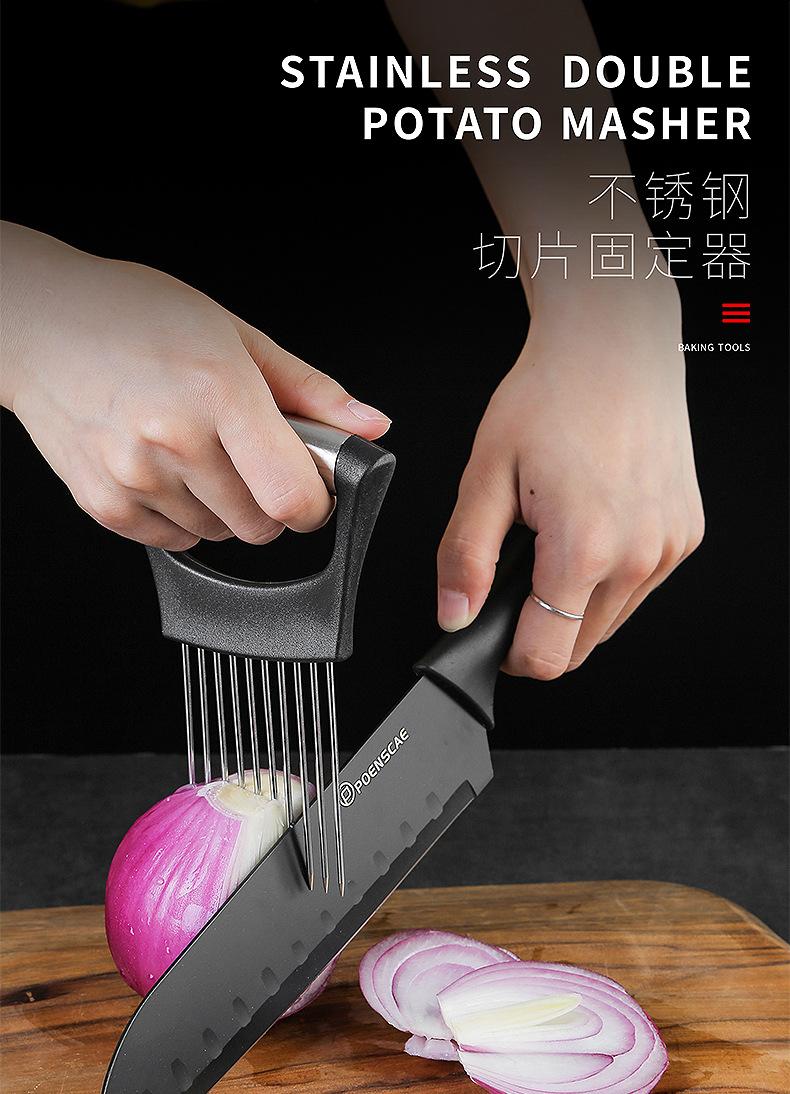 Nombre del producto: Spot acero inoxidable tapón de cebolla picador de cebolla herramienta de cocina aguja para carne suelta aguja para cebolla cortador de cebolla