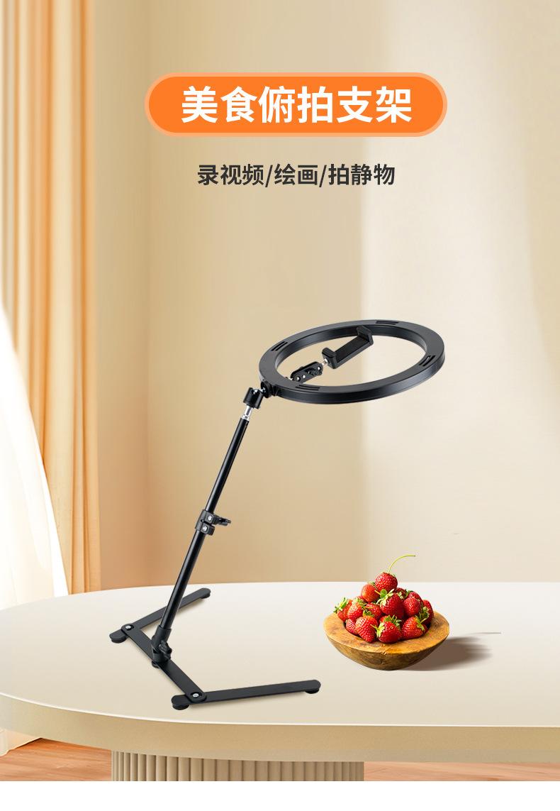 Soporte de techo para teléfono móvil, luz de relleno de belleza LED, soporte en vivo, artefacto de cámara de video de comida para grabación de escritorio