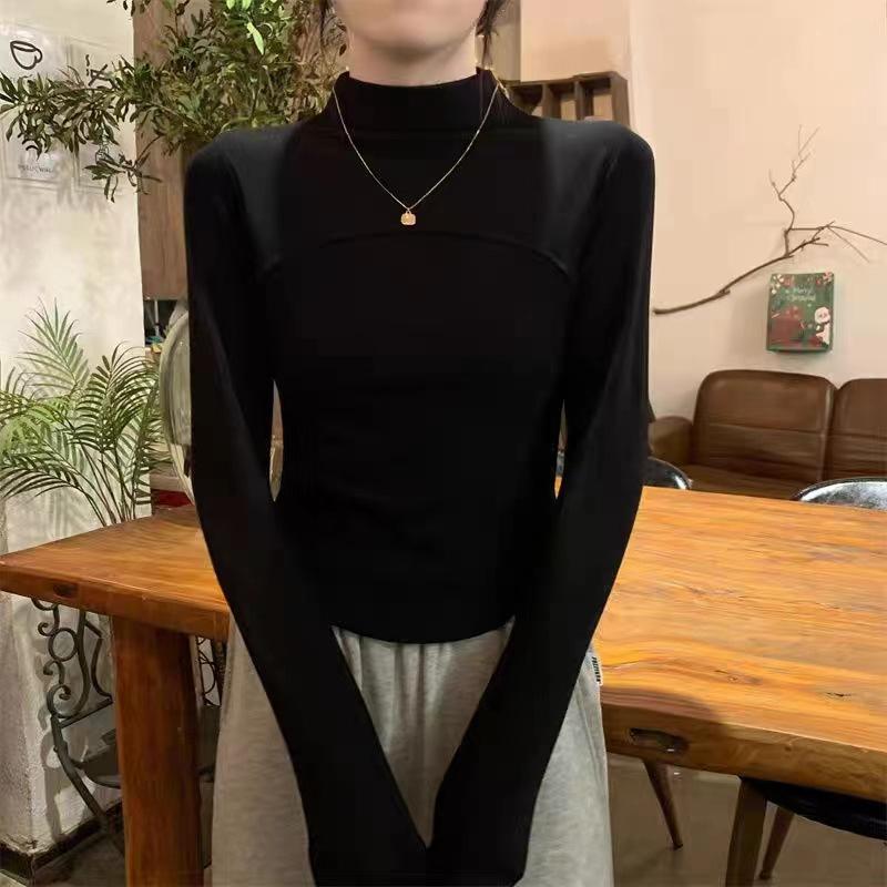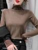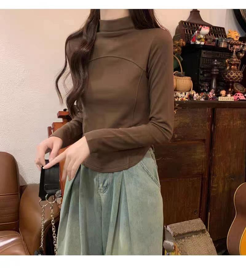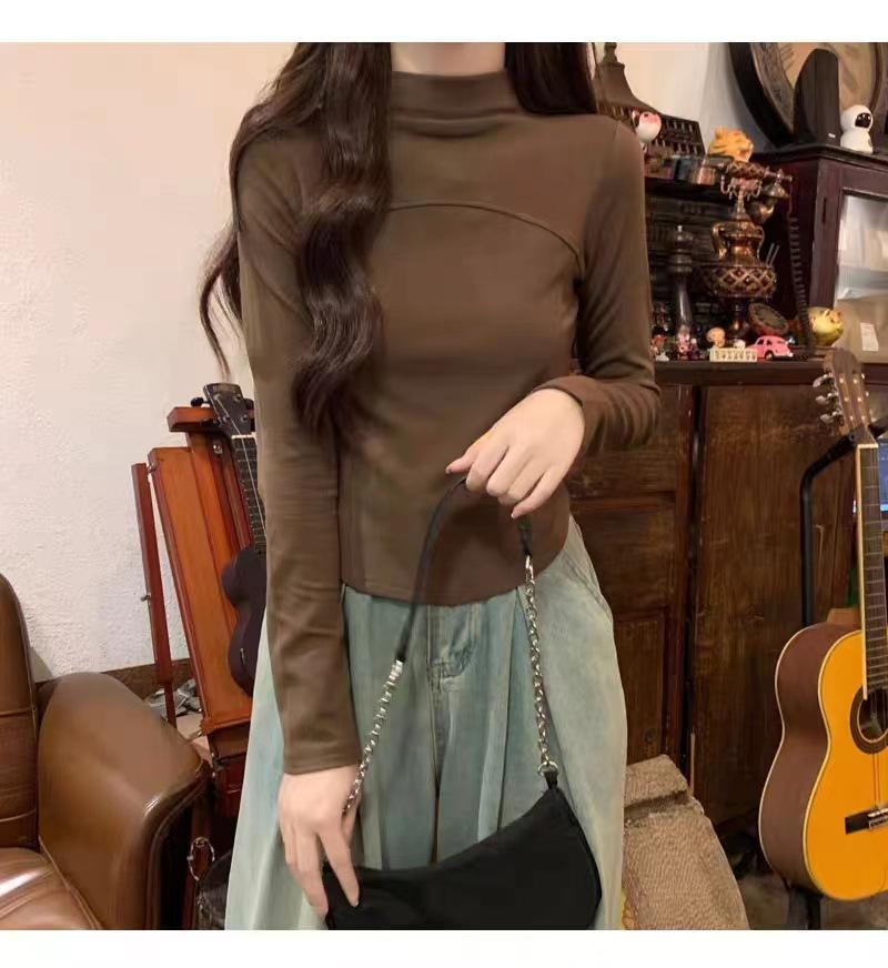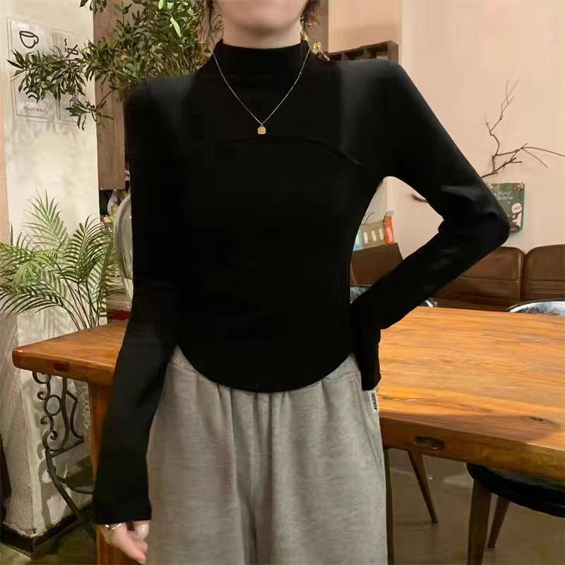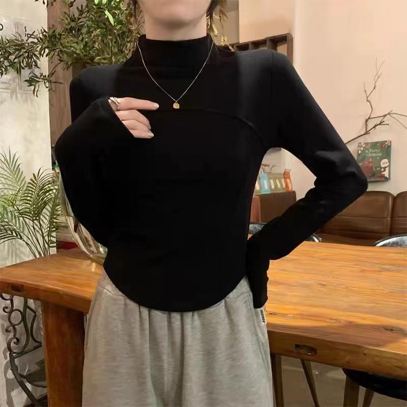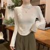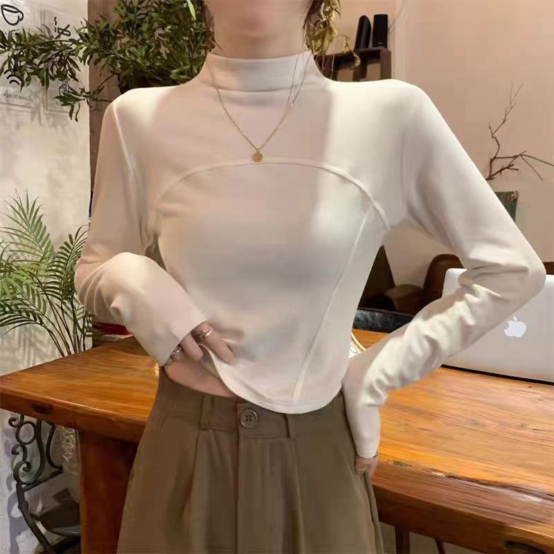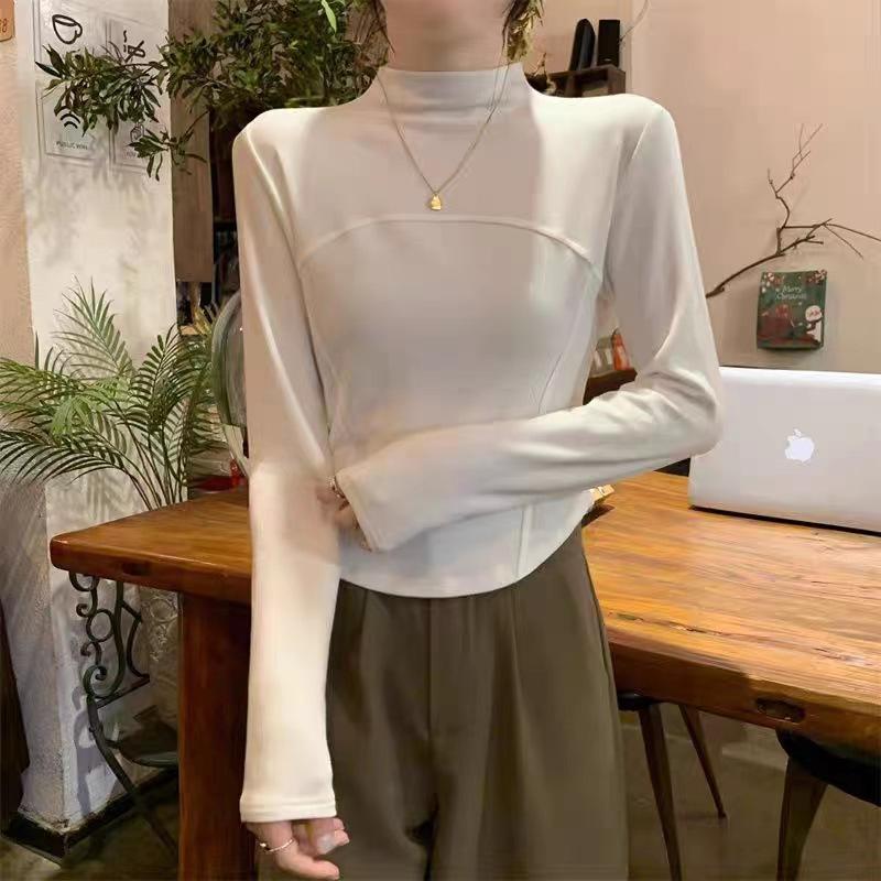 Camisa de terciopelo blanco con cuello alto para mujer, nueva camiseta de manga larga interior adelgazante de corte entallado para primavera, otoño e invierno.
