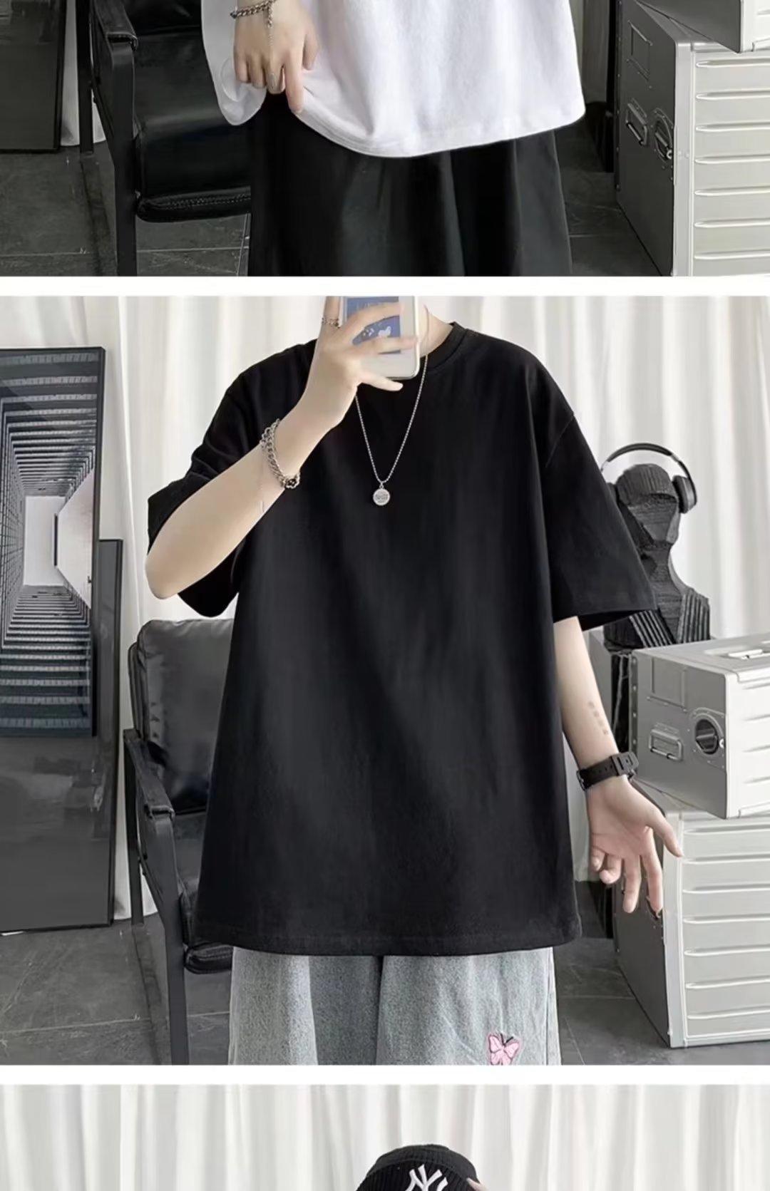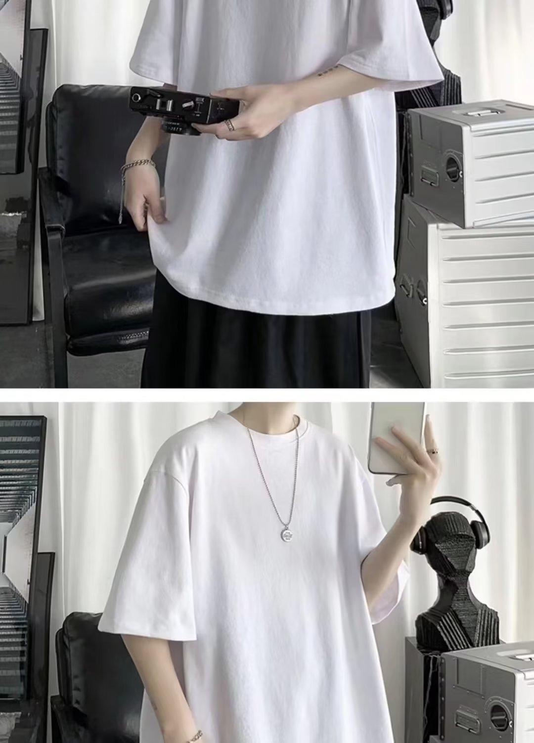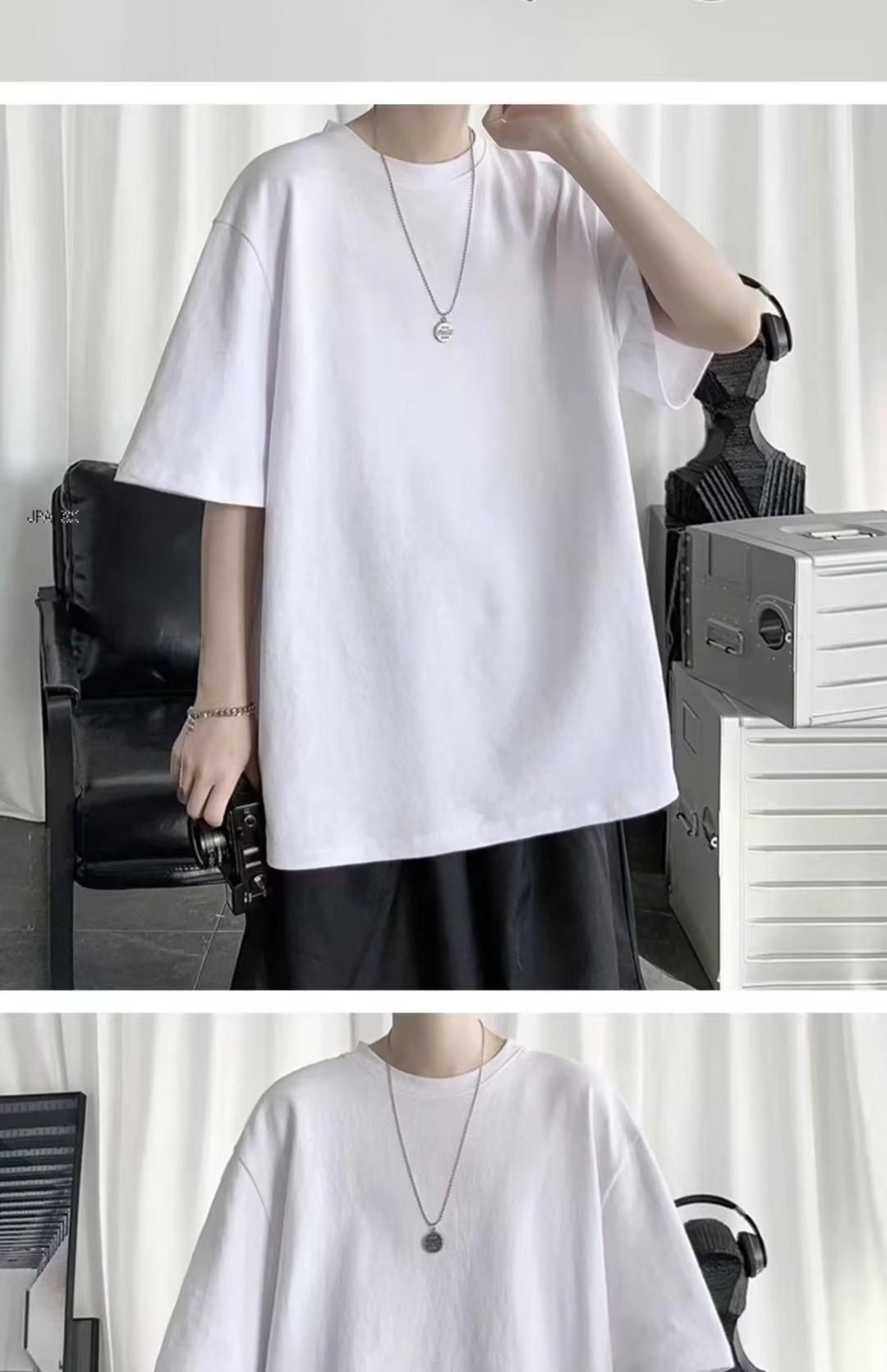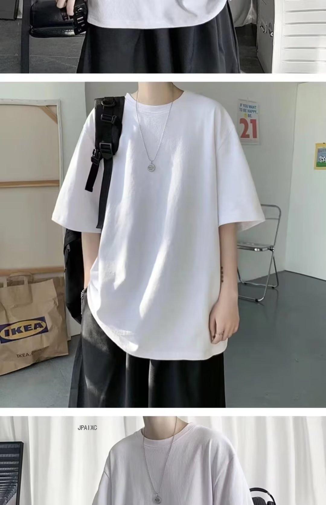 Camiseta de manga corta de algodón grueso de 230 g, de verano, de color liso, para hombre y mujer, con cuello redondo, holgada, blanca, tendencia